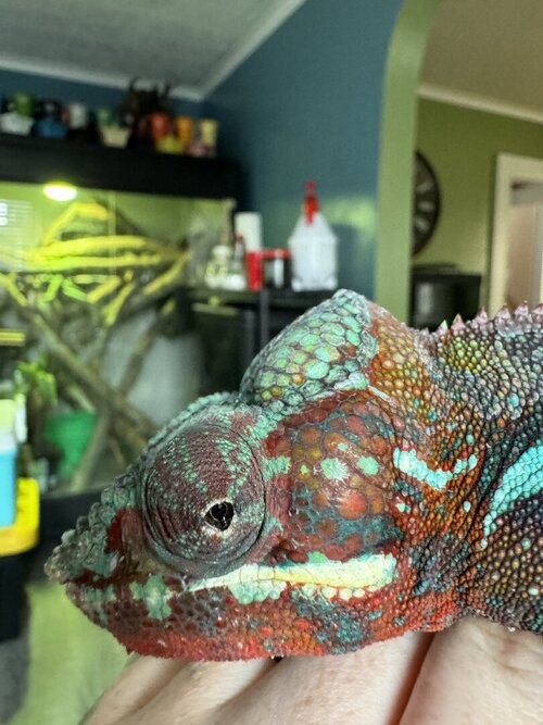 I can't tell if he is about to shed. Not the typical look of one coming on though. As an adult they shed in patches.I took him outside since we hit low 60s and sunny. Definitely appears to have a shed starting the first pic is the right eye he’s been rubbing and having issues with and the second pic is another spot on his left eye (on right in pic) that looks like shedding?