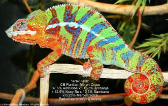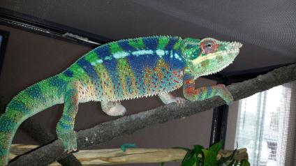 I have a Morph Cross Panther Chameleon for Sale. He is almost 2 years old. He hatched in September 2012 and is from Kammerflage Kreations. His Sire is Arak Tral and attached you will find a picture of his sire and pictures of him. His break out is 37.5% Ambilobe x 31.25% Ambanja x 12.5% Nosy Be x 12.5% Sambava x 6.25% Maroantsetra. He is a proven breeder. Price is $400. Please PM, or text with serious inquires. 714-718-4073