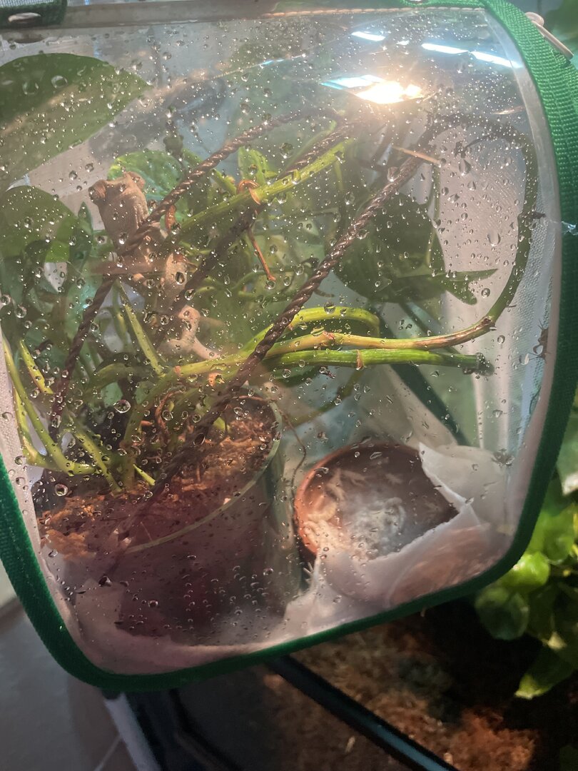 I made a tremendous mistake of putting a philodendron and a golden dew drop in his enclosure. I heavily washed both of these plants before putting them in his enclosure, luckily.