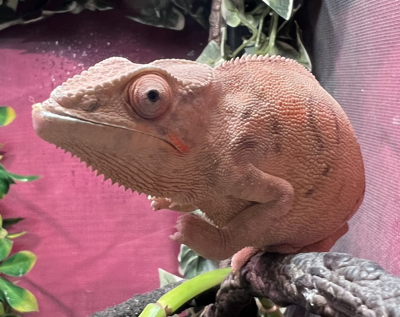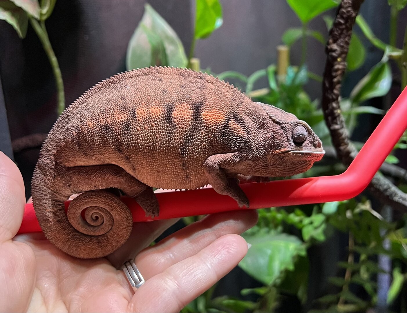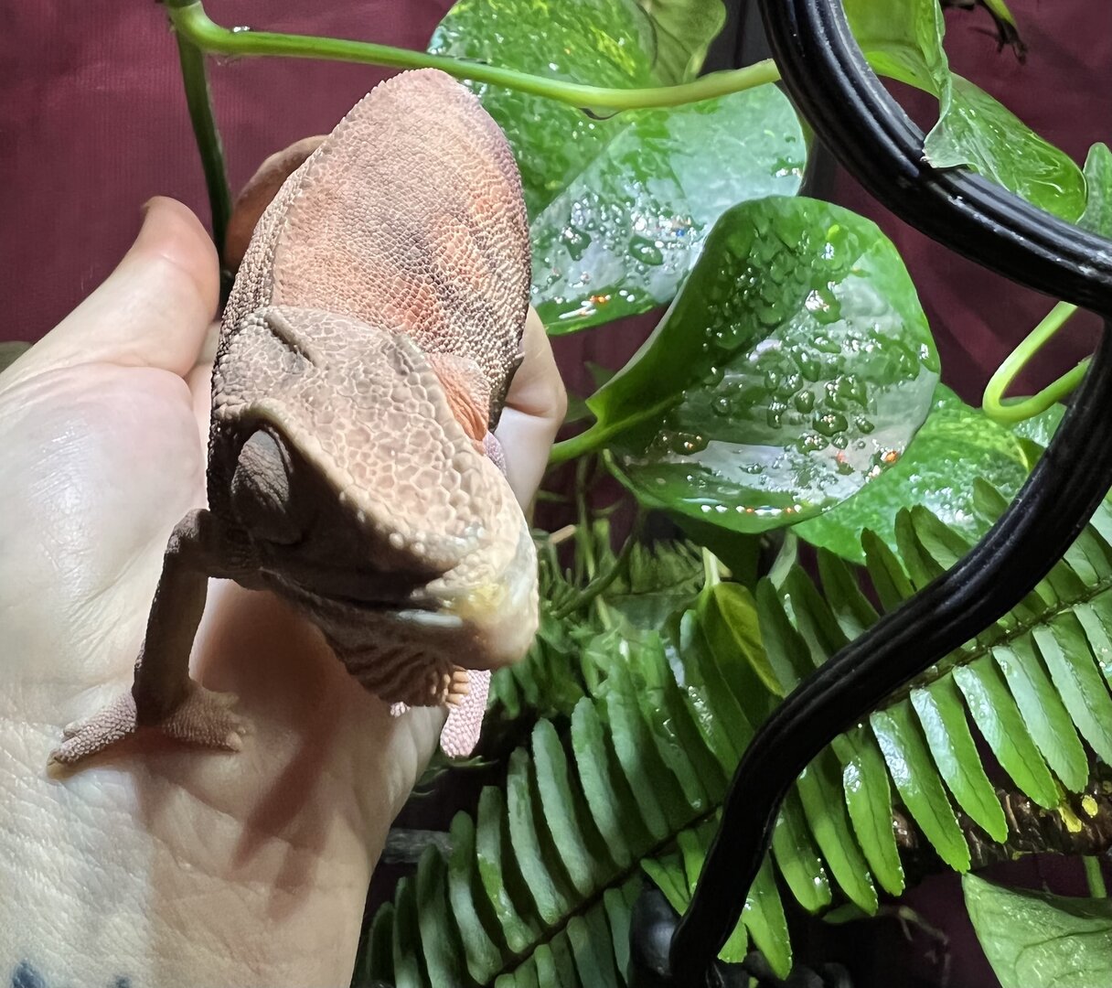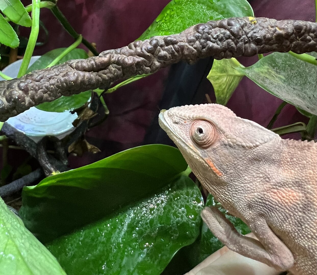 Since I had an empty custom cage for chameleons my husband thought he'd surprise me with a female chameleon. He doesn't know anything really about reptiles and I have only owned veiled charms.