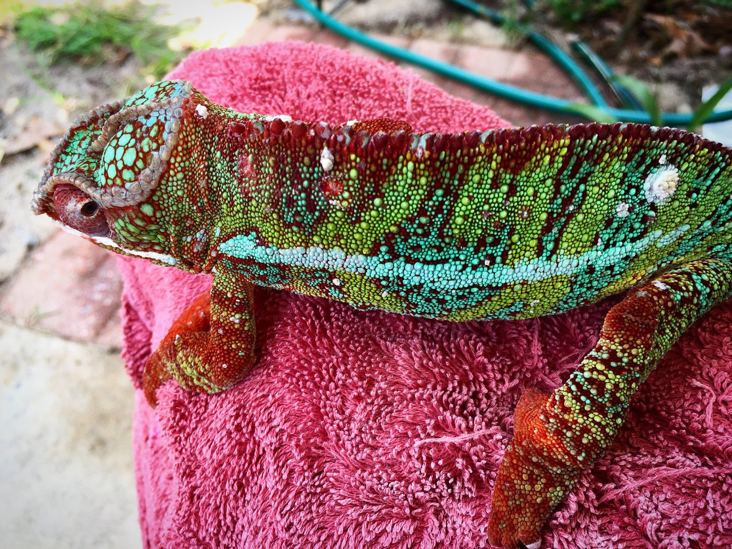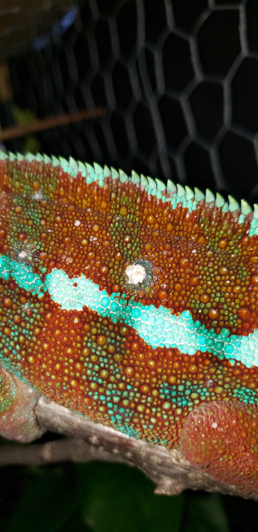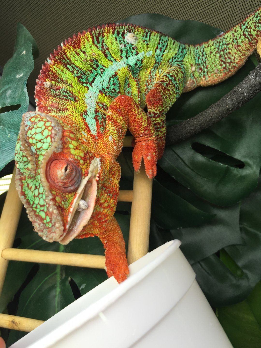 But I'm putting this out there because there is so little information about this condition on our chameleons. If you suspect your chameleon has this, I would recommend finding a GOOD vet and having a biopsy done if you are wondering what it is. It is not curable, but it is manageable to a degree. You have to absolutely be aware and careful of any cross contamination at home, at the vet, reptile show, etc. Always use hand sanitizer before and after handling ANY animal.