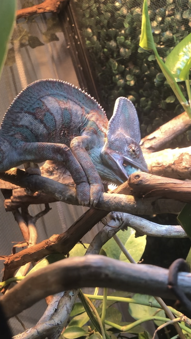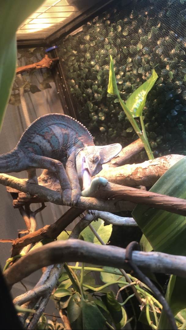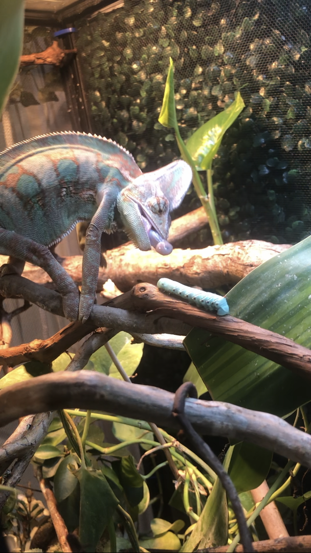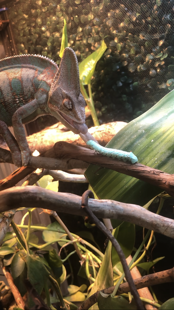 A few weeks ago I finished his new cage so I got him some horn worms to try for the first time. I took a video of him but I can attach it so cute pics will have to do!