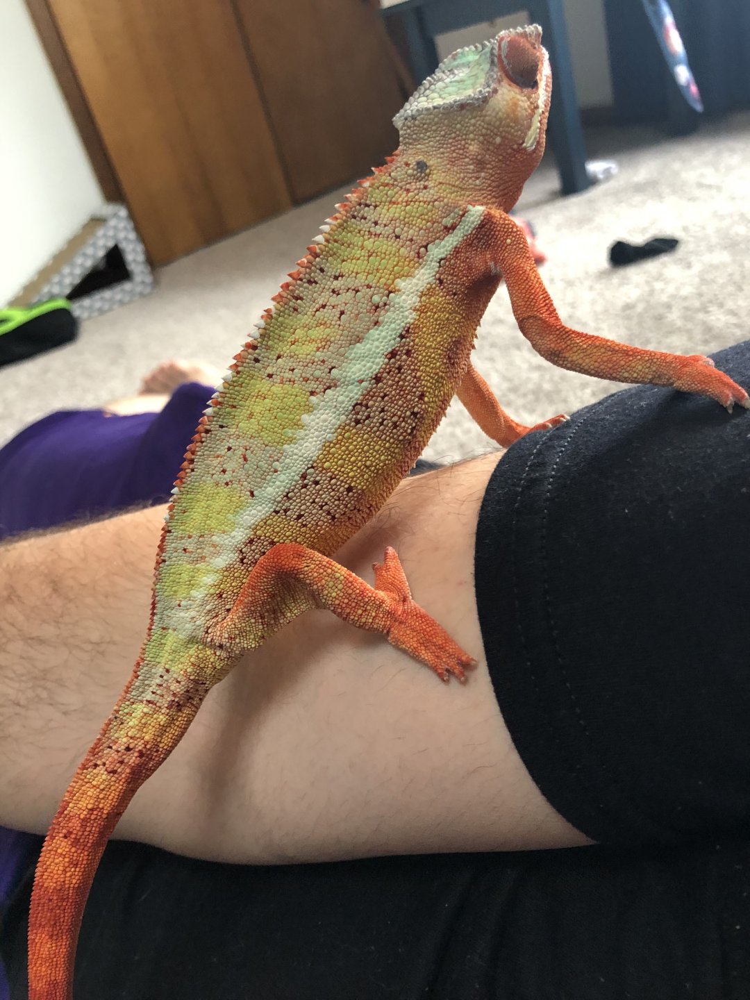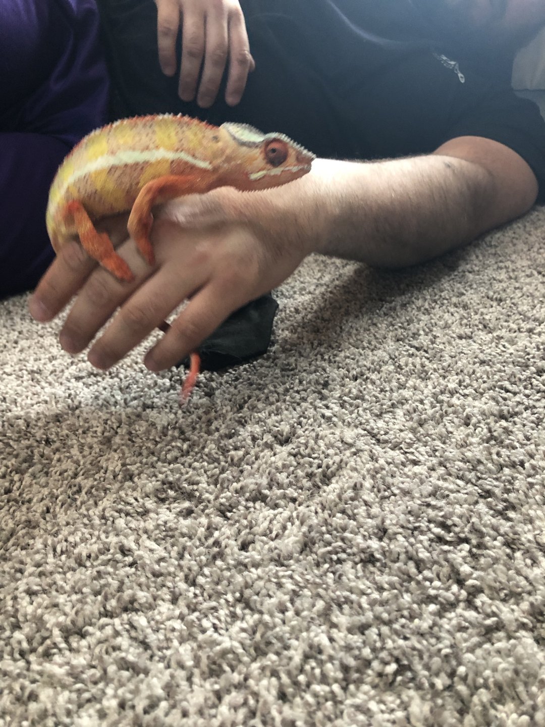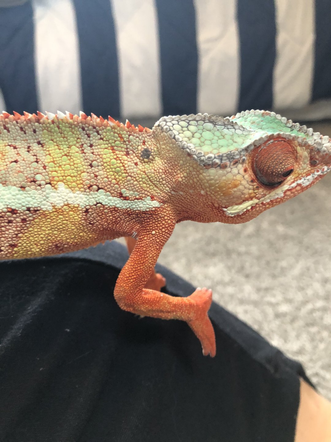 - Your Chameleon: Male, Panther. About 11 months old. Purchased from a local Petco in August 2018