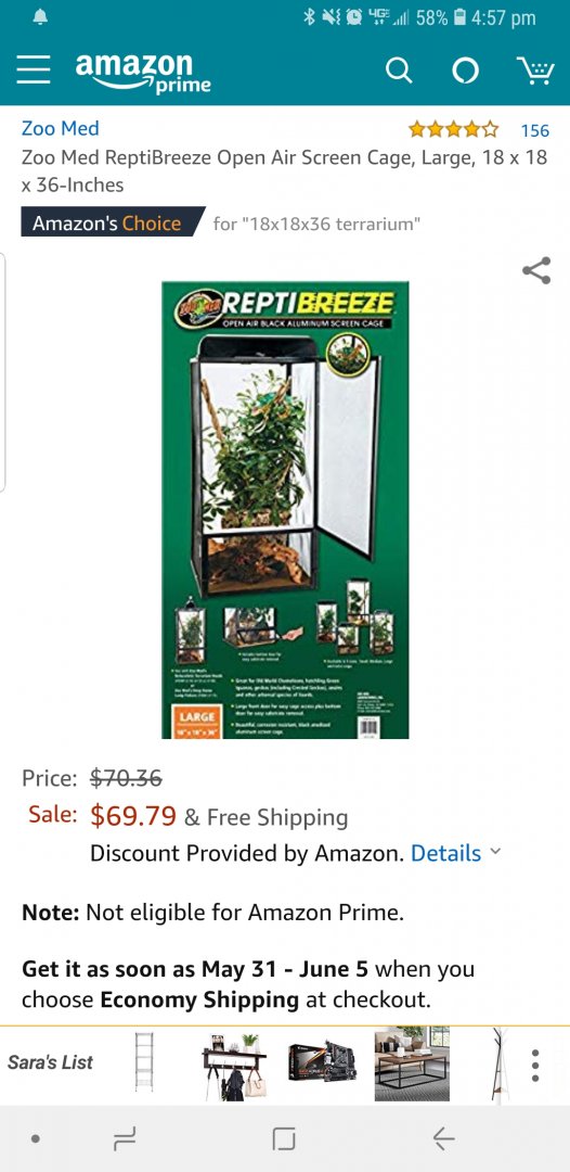 ◦ Cage - Combo cage with glass that has ventilation in the front doors and mesh on the top. 12 x 12 x 18 for now and will be upgrading in a few months when I love. Brand is Exo-terra.