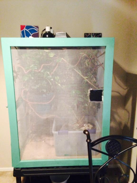 It was a big upgrade from her medium cage. Now Pharaoh can grow in her adult home. I have 6 plants in there, 50ft of vines and a laying bin