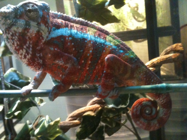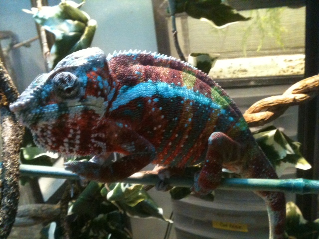 Here is my proven breeder 16 month Red bodied purple barred male Ambilobe! The first three pics are his resting colors. His name is Shir Khan The female is also mine!