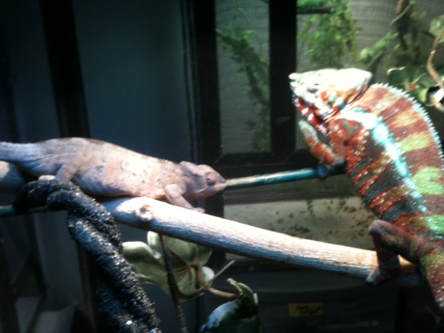 These are pics of my chameleons. I have 1 male Nosy Faly that is 4 months old. 1 sixteen month old Ambilobe and 1 gravid female Ambilobe. Please let me know what you guys think!