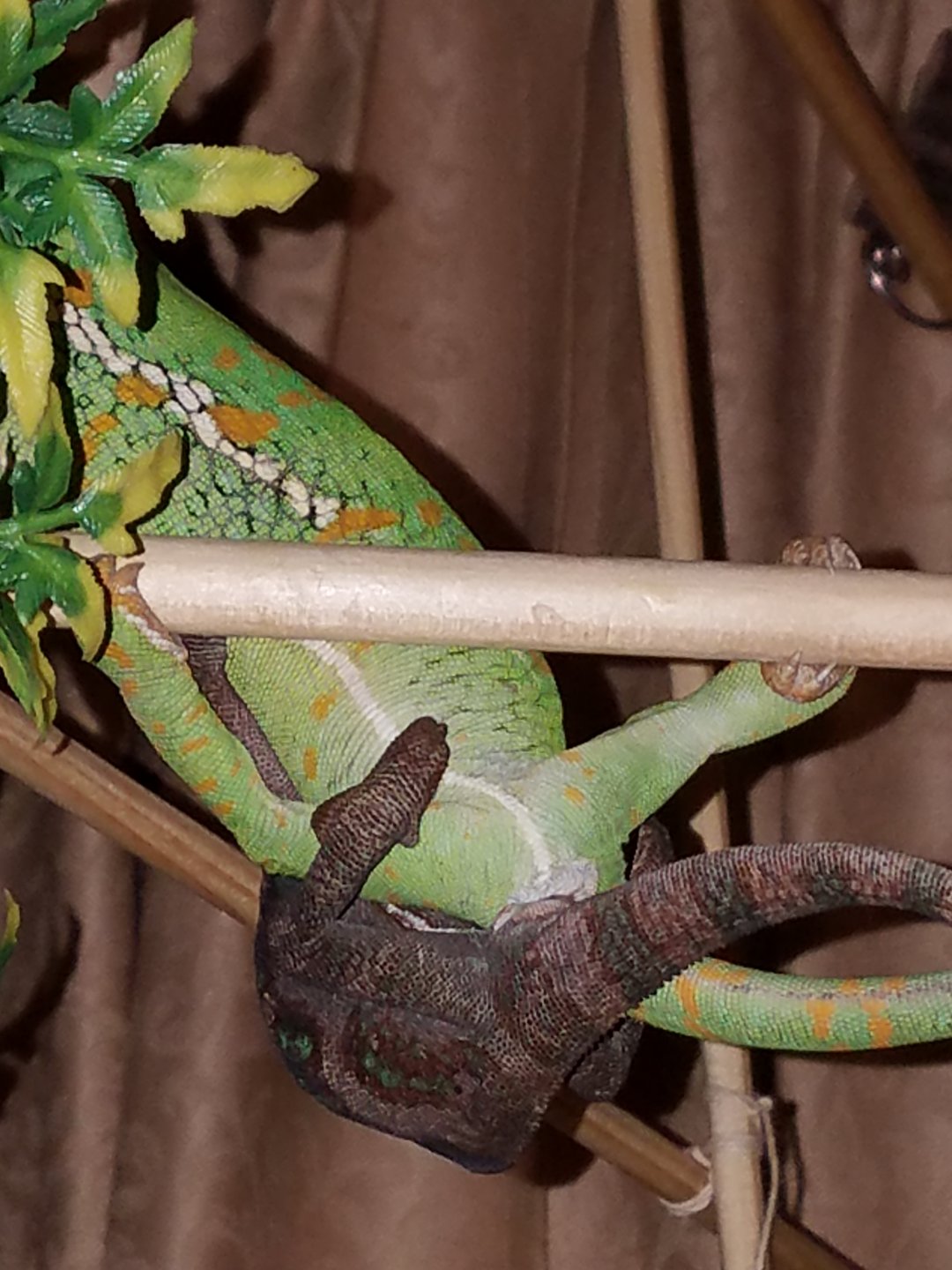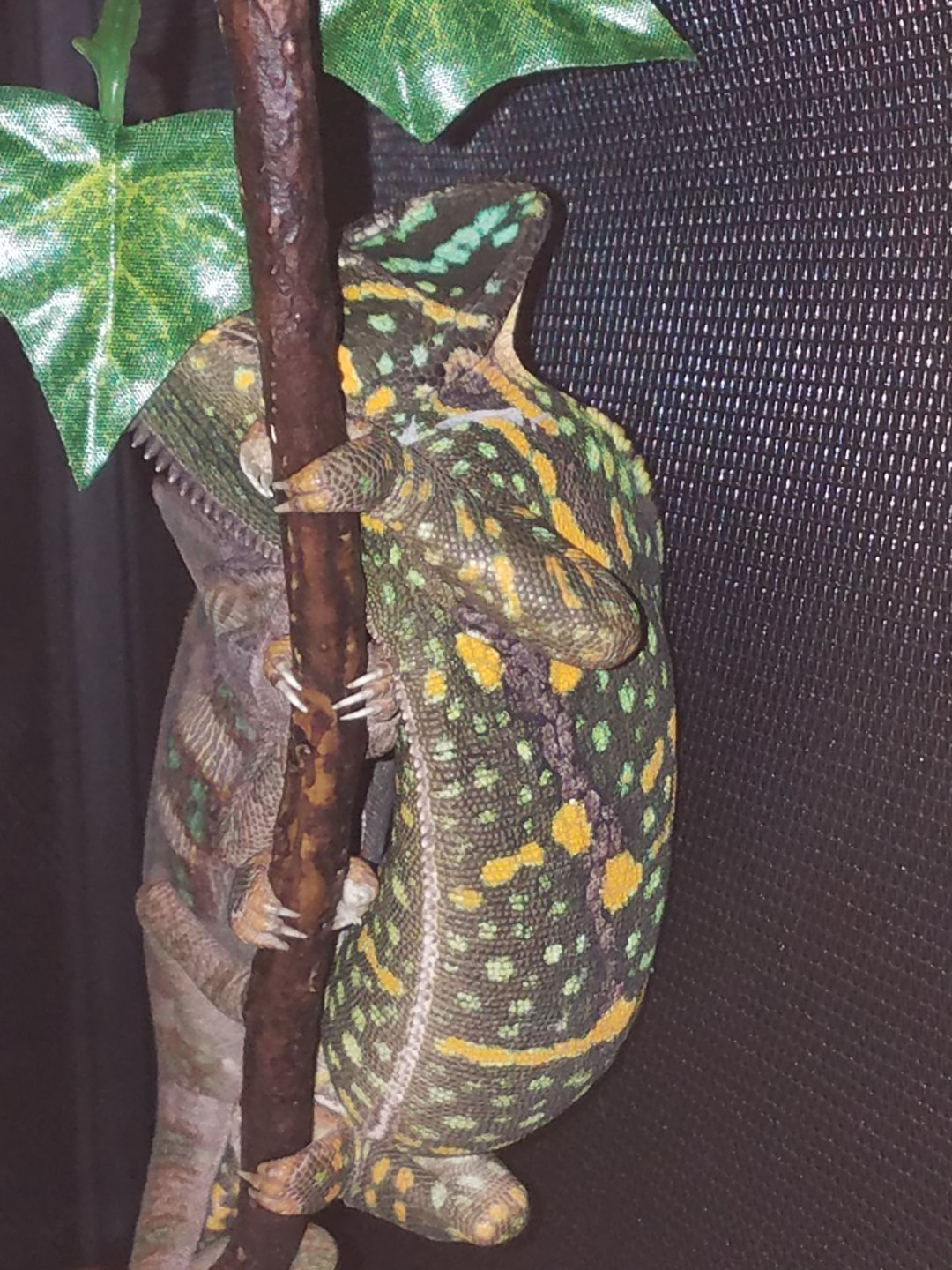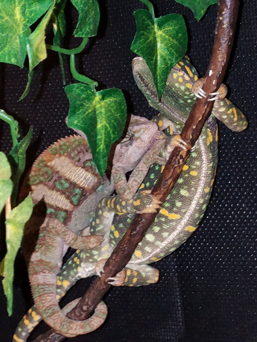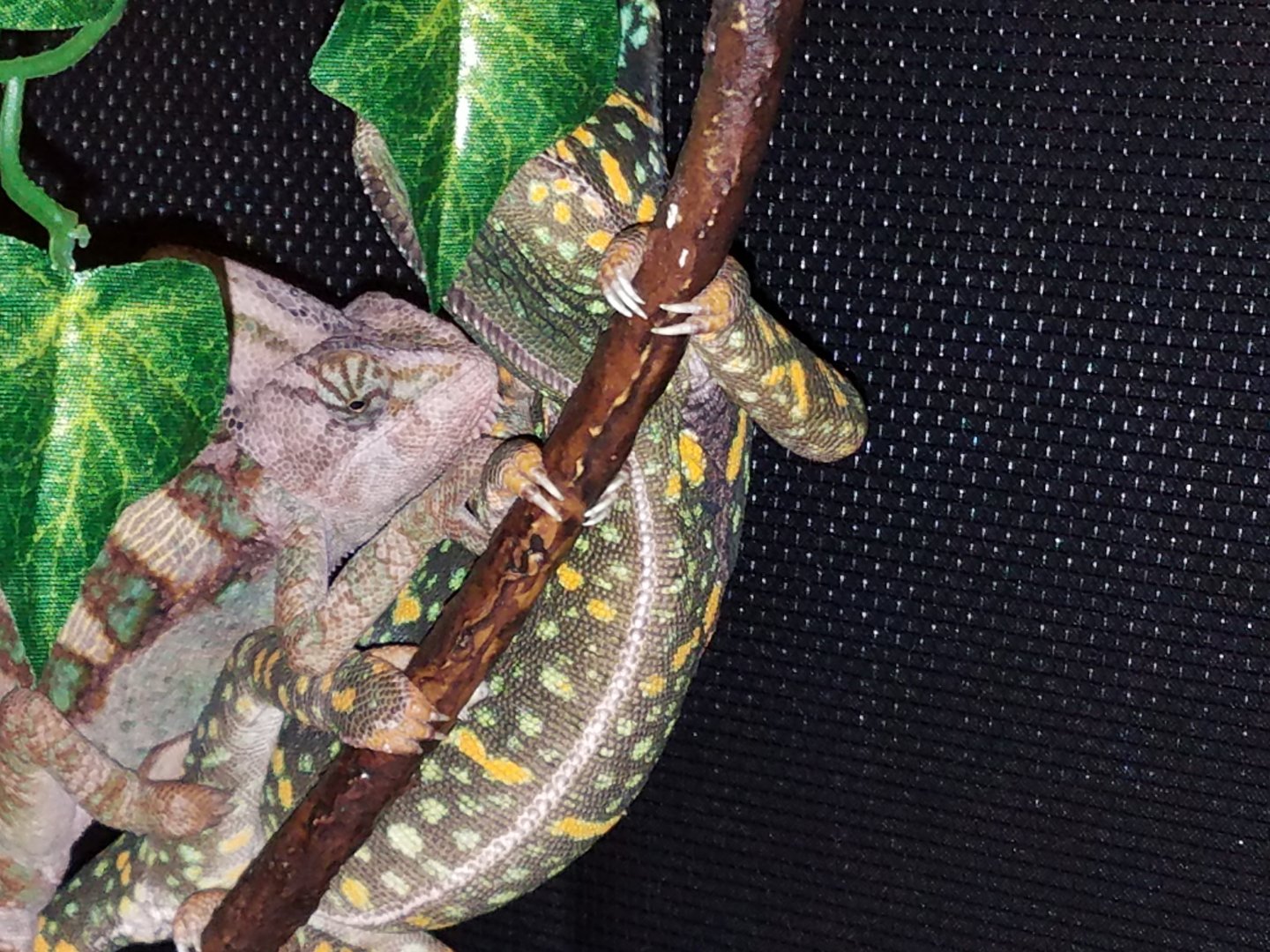 Two of my veiled chameleons got together, and now we are waiting for eggs. I've estimated that delivery day could start as early as February 6th, or as late as the 16th.