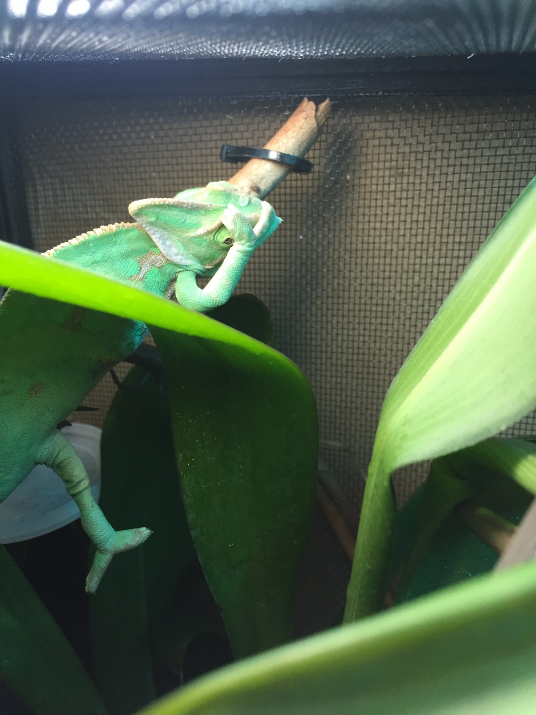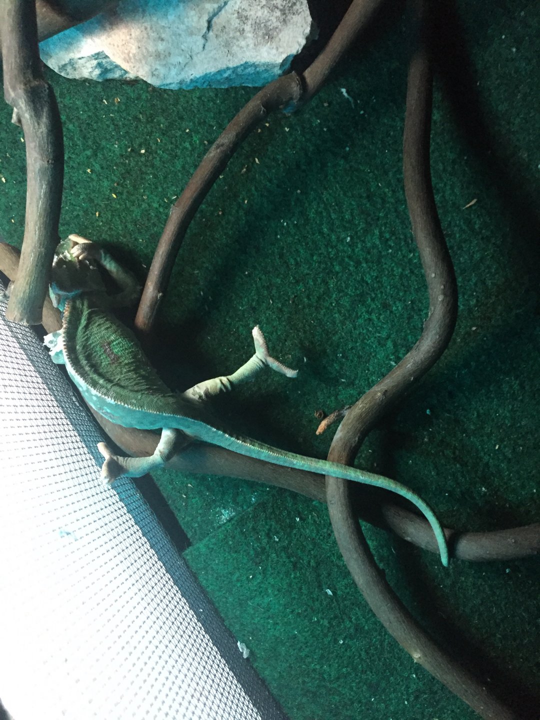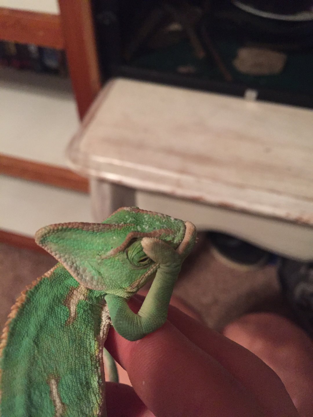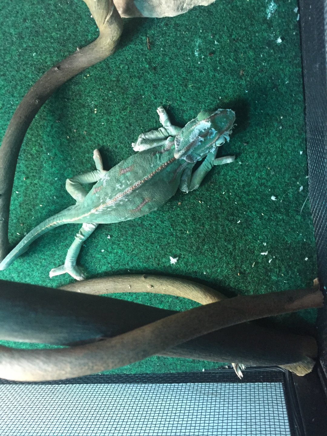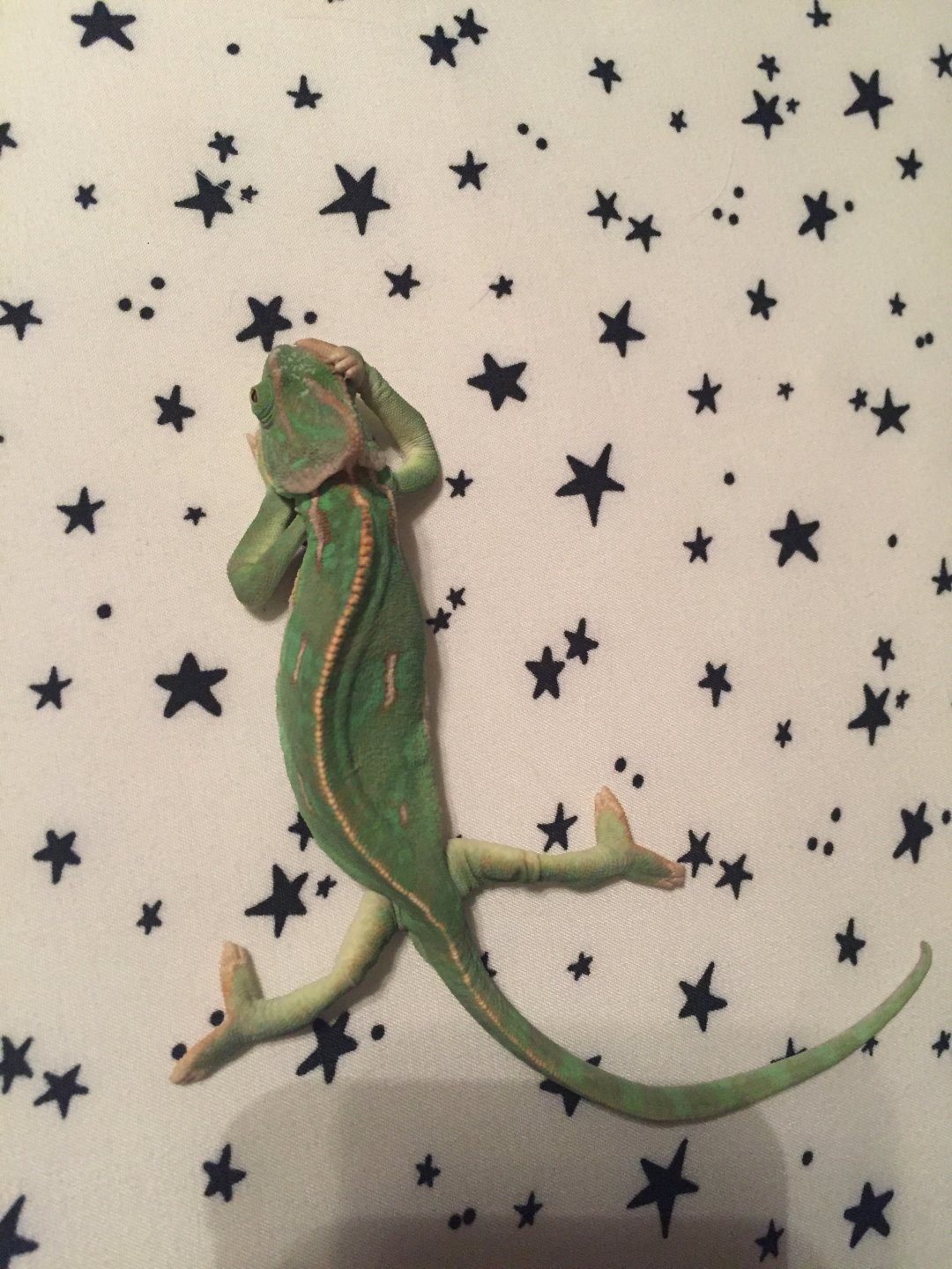 Recently my Veiled Chameleon's hind legs started to function quite oddly. He spreads them both out to the side and does not bend them underneath himself. He even drags and climbs himself with only his front legs and his tail to help. It's actually like he is doing the splits almost all the time and the only way he will grab on to something with his hind legs is if it is out to his side so this way he can remain in that splitting stance. It's kind of like his upper joints that connect the hind legs to the body are dislocated. I'm kind of getting worried... any help or ideas of what may be causing him to do this?