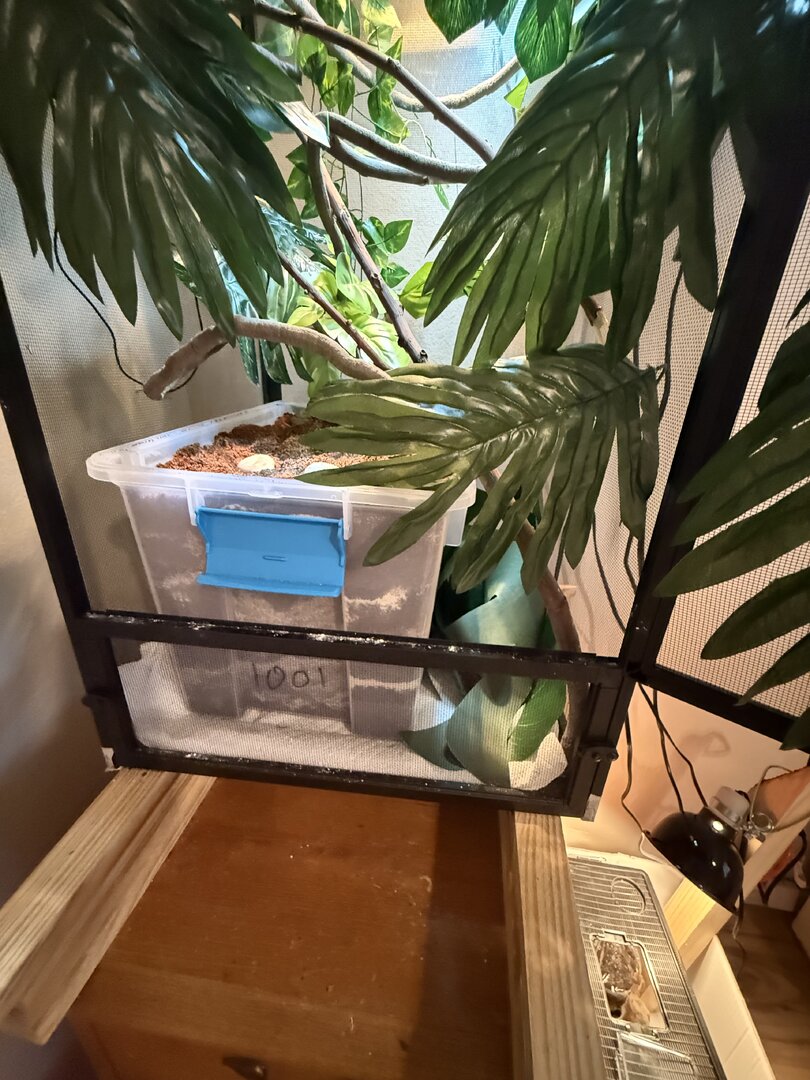 Since she started appearing bigger and appeared stressed I’ve reduced to 1 feeding per day about 5 crickets