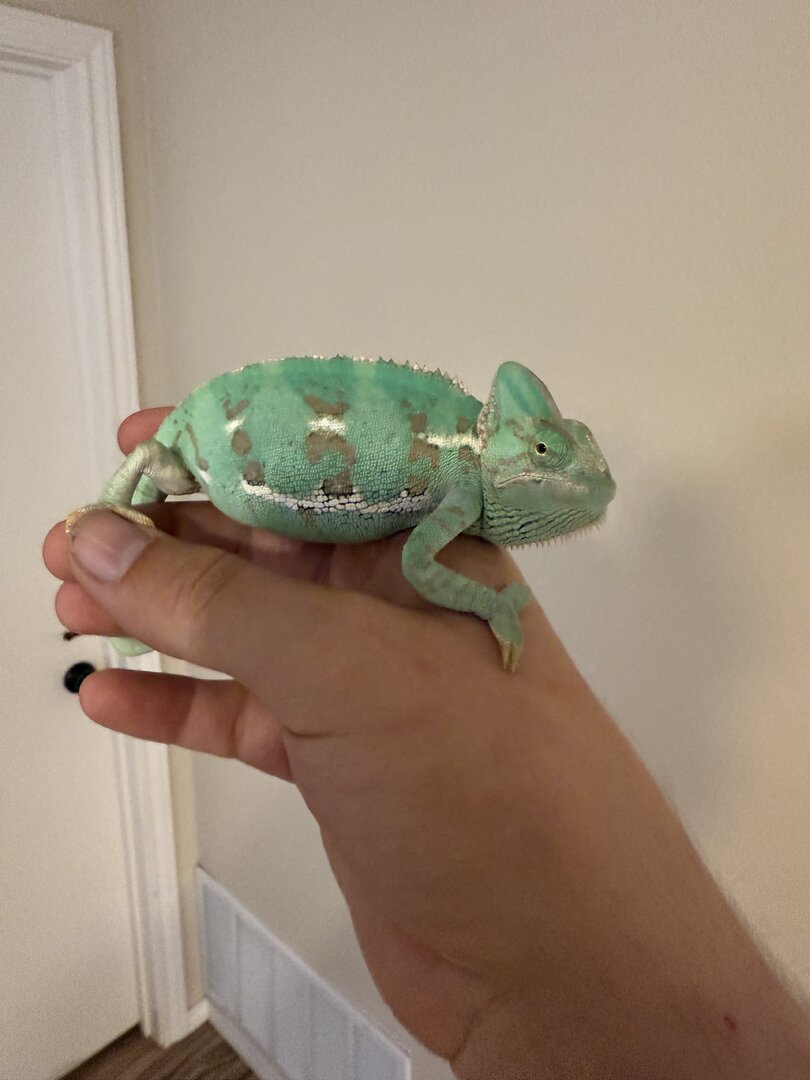 I’ve got a female veiled chameleon who is about 8-9 months old. We got her at about 4 months old in August from PetSmart thought she was a male (that’s what petsmart told us) until we researched it a month later.