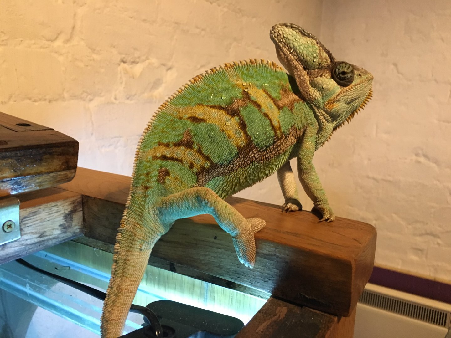 4-cage : glass can lead too respiratory infection, i really suggest to switch too the screen (except if you are familiar with chameleon and you really know how to handle glass cages with them! but..