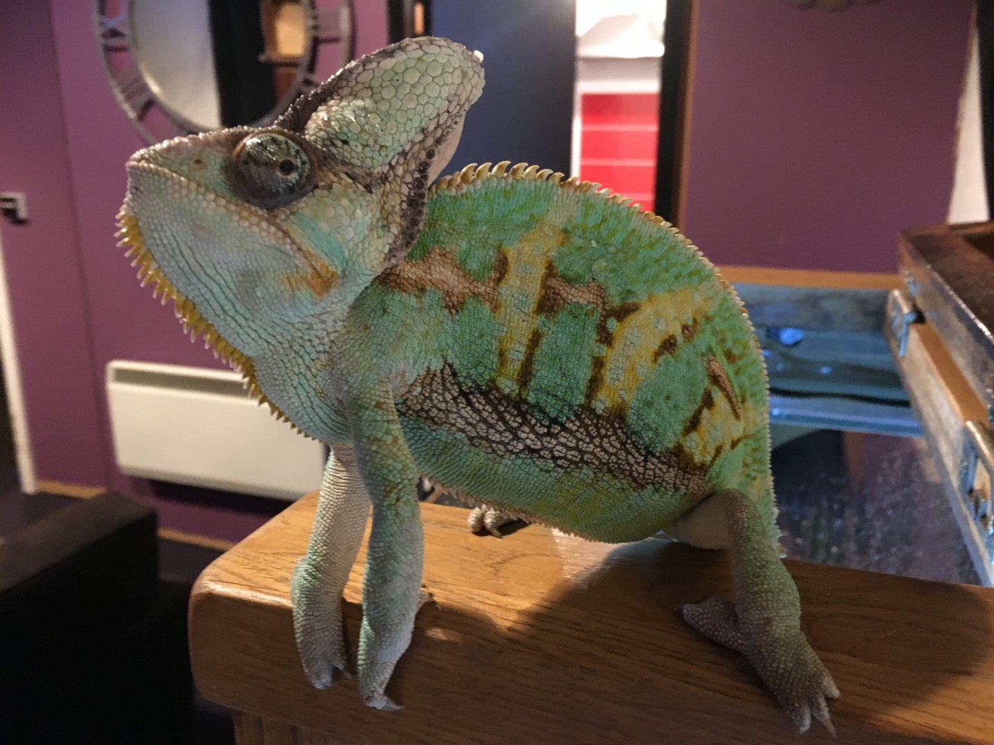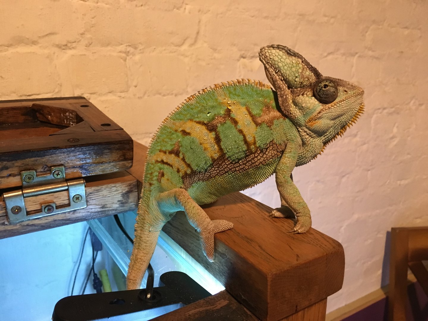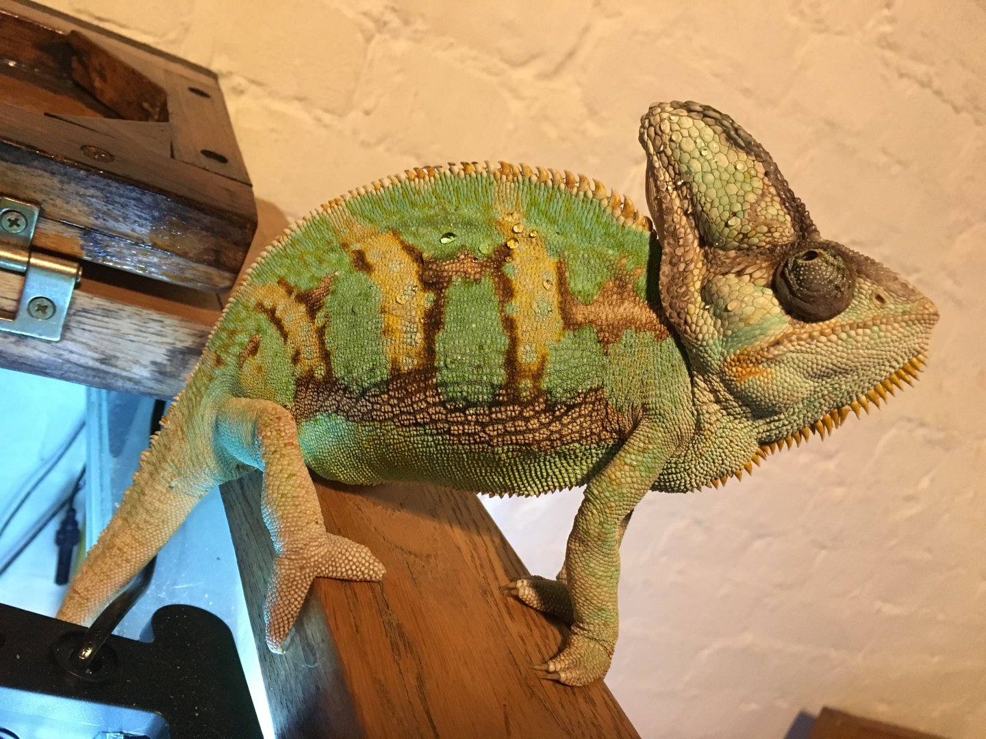 • Your Chameleon - Male, Veiled chameleon, when I bought him they said he was 3 - 3.5 years old used for breeding. I had him 2 months