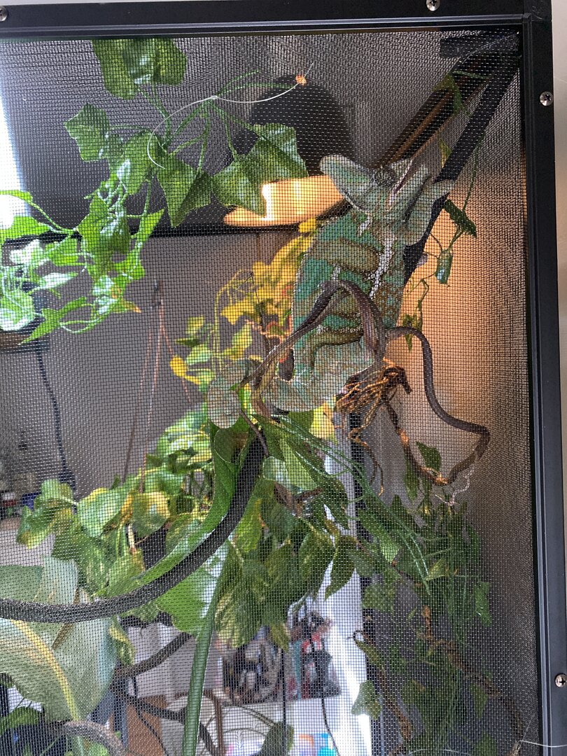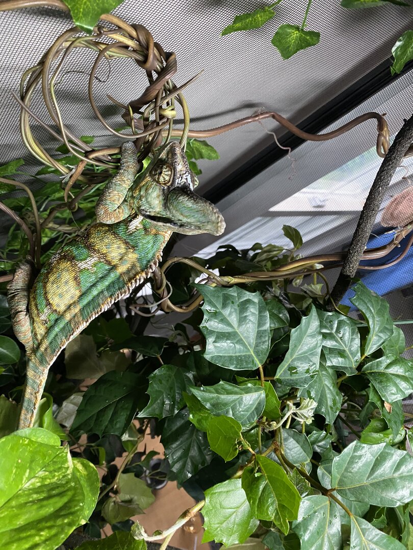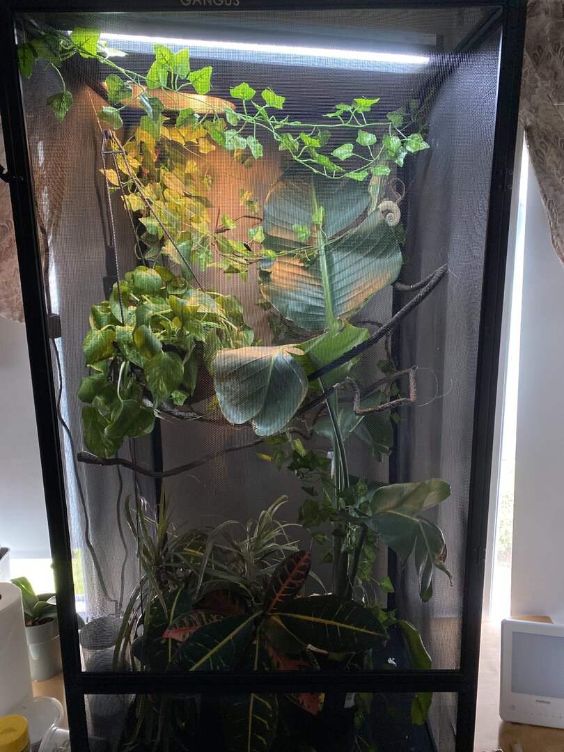 Really desperate for some help with my guy gangus. Seen 2 different “exotic” vets in the past few weeks because he has been gaping at the mouth constantly. As in he has his mouth open more than closed- as of today. I assumed a respiratory infection. Brought him in and they said to give him a bath and increase humidity. Can you hear my eyes rolling? Also gave him 2 doses of panecure. Finally got them to prescribe baytril 2 weeks later after they gave me CARNIVORE CARE to keep his weight up. So absurd. In the mean time, I gave reptaid a shot for the 14 days. Saw no improvement in appetite or the gaping. He won’t eat or drink ANYTHING. Today is the third day of Baytril along with benebac and I’m seeing no improvement. I know baytril is strong, and a broad spectrum antibiotic that may not work. I don’t know what else I should be doing to aid in recovery. I mix bee pollen and water and use a syringe to help his immune system. I used a fogger overnight (which I never use) to hopefully aid in hydration. Today I have him outside in his old cage so he can get some natural light and fresh air. Please, any advice would be appreciated. Background- Been in my care around 6 months, he is in a 2x2x4 screened cage. 5.0 T5 HO UVB and a 60 watt incandescent frosted bulb for heat. Basking temps 85-87. He has a pothos, dragon tree, bird of paradise and a croton. And a couple small fake leaves in the corner. I spray his cage down twice a day for a minute at 8 am and 8 pm. He used to drink from a water bowl. I handle him once a week at most. But, administering the medication has been hard when he’s in the cage so I have to get him out for that. He usually eats gut loaded Dubai’s, super worms, horn & silk worms. The past month, he would only eat hornworms. Now nothing at all. His poop looks very normal as well as urate. I supplement calcium 4x a week w/o d3 and with d3 once/month with no phosphate. Reptivite once/month.