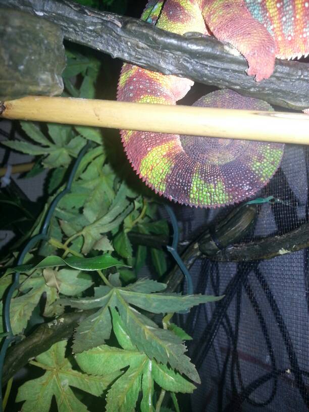 My cham went to the vets today for a blood test. When I opened his box on returning home I noticed that his tail seems to be discoloured. It appears to have darkened in colour quite a lot.