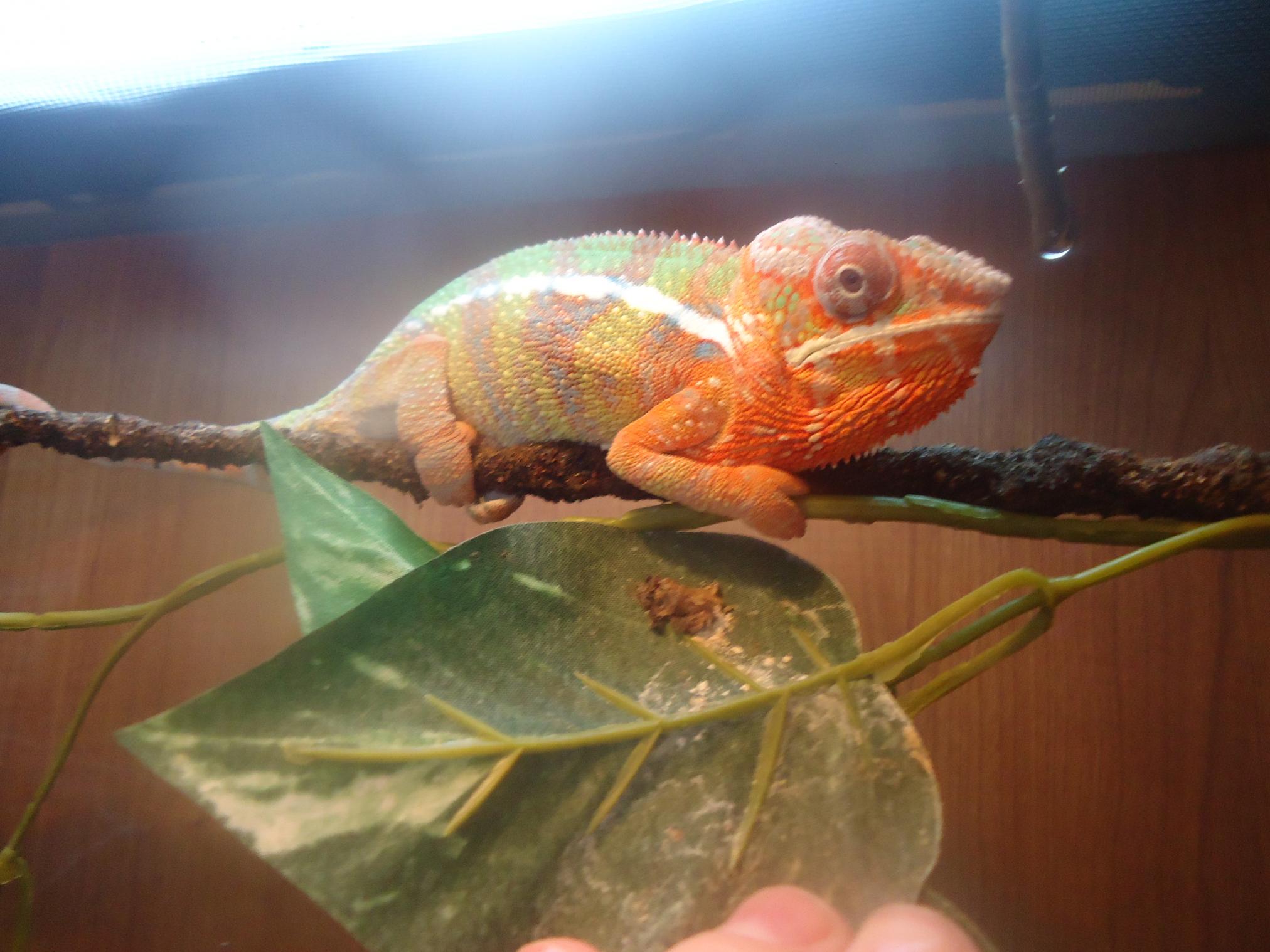 Hi, I bought a male ambilobe chameleon in december I put alot of time and money into having the perfect set up for him, I thought I was doing everything right for him. But about three days ago he started acting different, he was having trouble gripping the branches, then the next day I noticed that when he would walk his front legs would grab his face instad of the branch. He is not nearly as active as he was. I have been trying to see what I did wrong, and I think I found out what the problem is . For his uvb I bought the floresent UVB zilla hood with a retisun 5.0, when you buy them they have a clear lense that covers the bulb, I never thought twice about taking it off because when I buy a UVB hood you would think I could use it to give my chameleon UVB light, but as I have researched I have found that it will filter out the UVB. As mad as I am the damage is done, but I am wondering what I can do to get my chameleon healthy agin. I give him reptivite multi vitamins once a week, reptical with D3 once a week, and a straight calcium supplament every day. I mist him 3 times a day. His basking spot is about 86 degrees and the bottom of his cage is 68 degrees. I gutload my crickets with cricket crack, and feed him a super worm every other day. I would realey appreciate some advise on bringing him back to normal if possible. THANK YOU