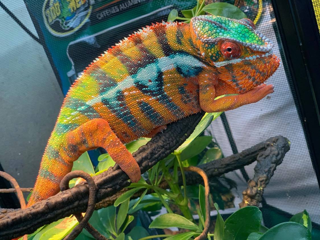 Sativa was also a pet store bought chameleon, I was so surprised that my local petco have 2 panthers for sale. I was told from the petstore employee that sativa was a male. After looking at her amazing color palette I started to question “his” gender. And turns out he was a female… lol but regardless I love her and her personality. She is also around 5-6 months, really don’t know specifically but I do plan on breeding with more experience and when she is of age.