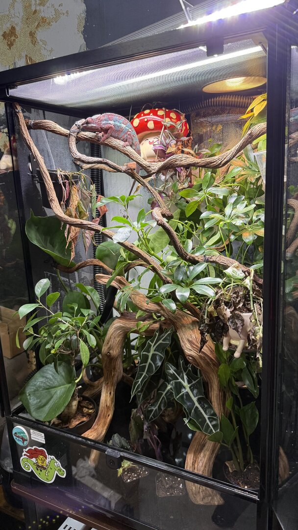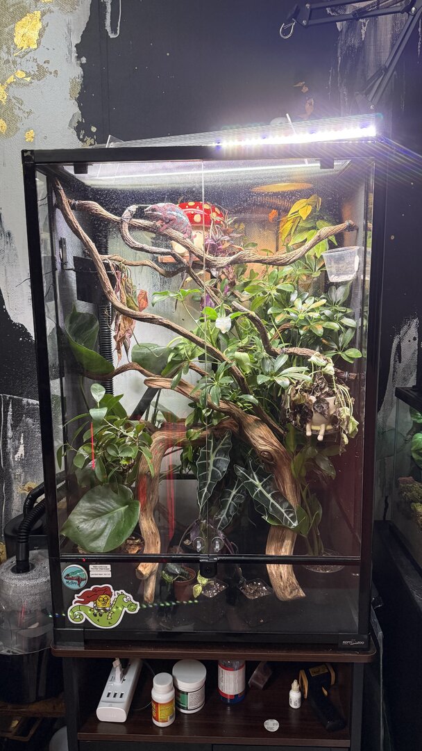 because he hasn’t really had his calcium supplement in 2 weeks due to not eating much. Ifany of you can shed some light on this that would be great. I’m including photos of Mystery and his enclosure. I just took these today. The vet said he looks like a healthy chameleon. Do you guys see any signs that I’m missing?