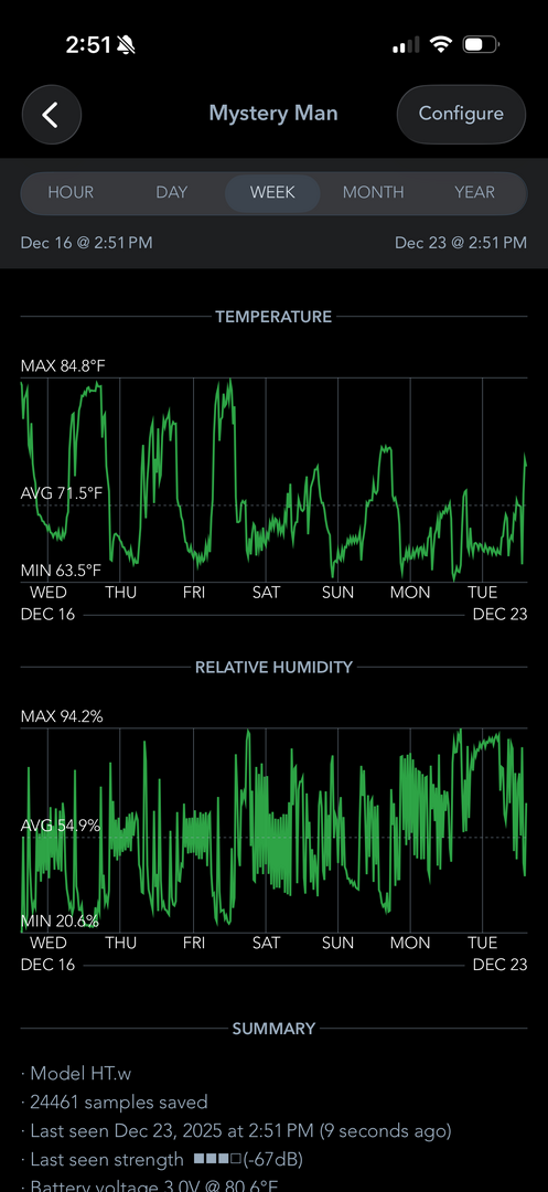 - Humidity - I have struggled with this in the recent months as it’s gotten cold & dry. I don’t think I was hitting his humidity requirements the last couple months. In warm months ambient humidity in the room is 45% and now it’s around 20%. I could only get his enclosure up to 60% at night with the nightly mist and fogger. I’ve doubled up on the foggers and we are now getting up to 95% relative humidity at night. His humidity is now closer to 60% during the day with the fogger running on a low setting.