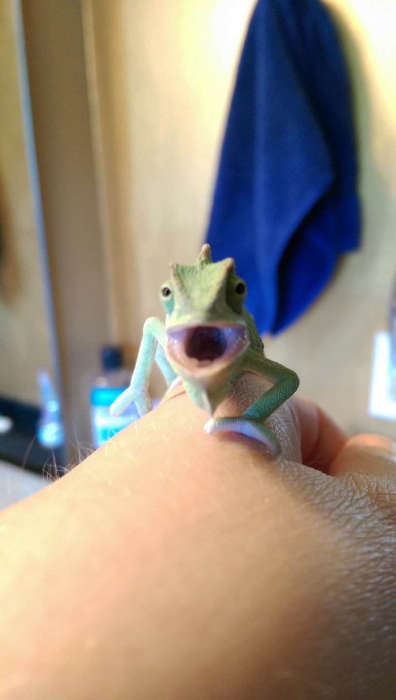 Ok she was scared , this is all new for your baby girl . You do need to get her hydrated . Was she eating when she coughed the bubble ? How are her basking temps ?Before the shower. I still tried to give her one but she kept trying to climb the plant beyond its height and fell down. I tried to hold her in the mist but she kept trying to climb up more.