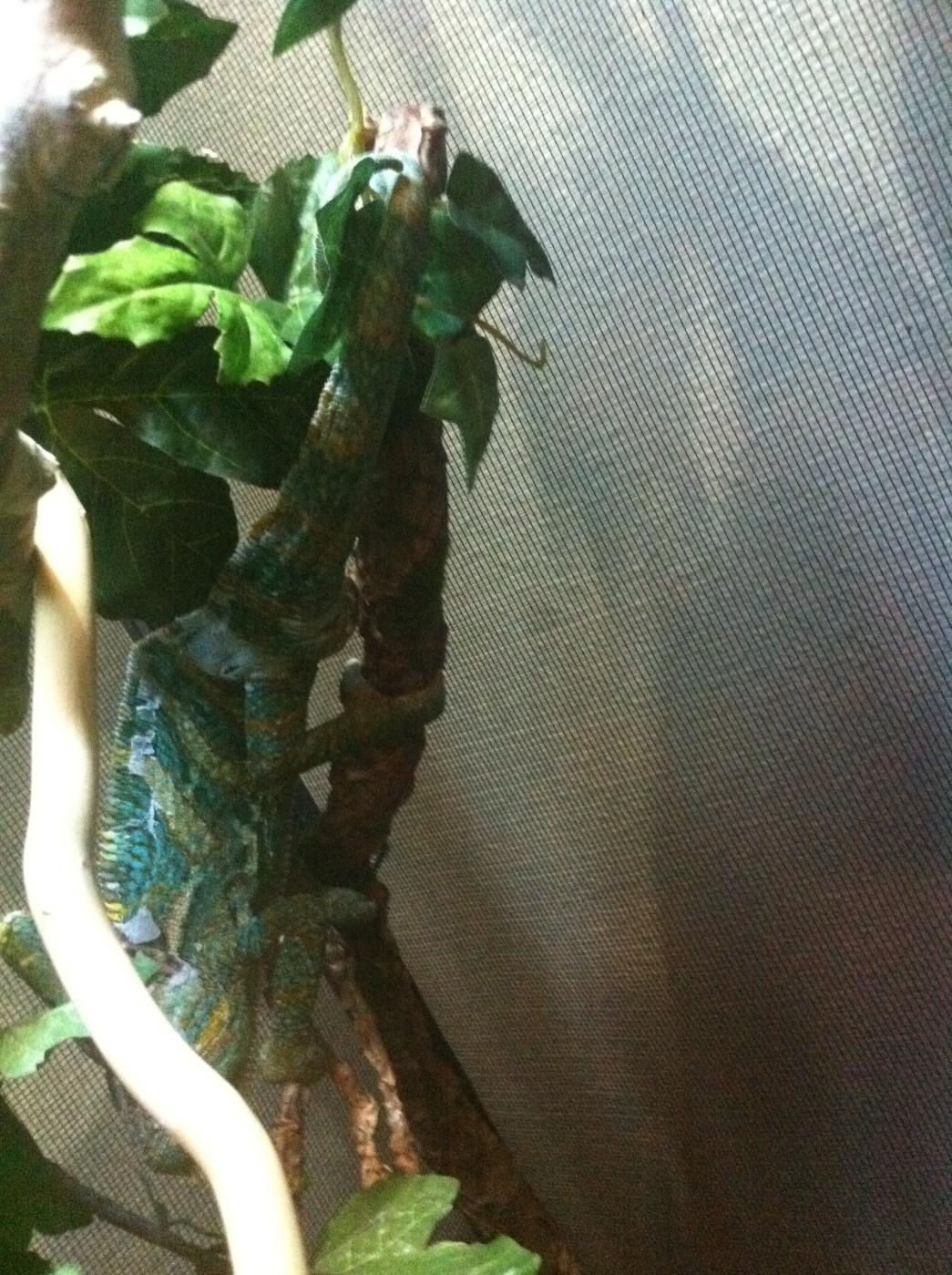 So I woke up this morning and went to my veileds cage to feed and give him water but I noticed there's something wrong with his butt idk what it is here are some pics, it looks like its swollen or something idk