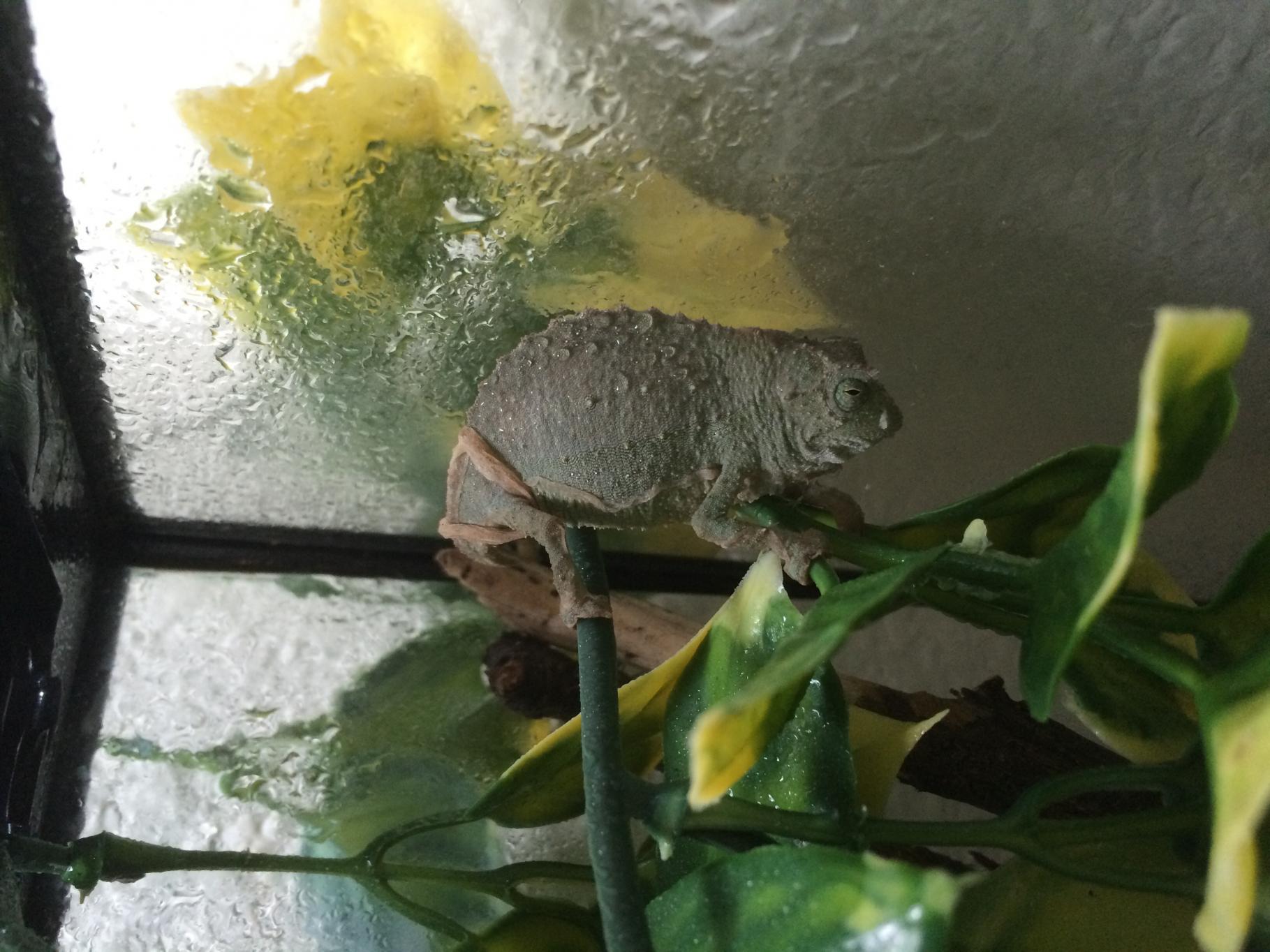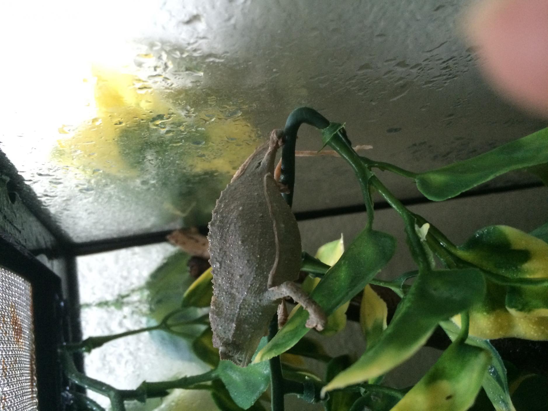 My pygmy chameleon started shedding yesterday morning and this morning there's still a piece of SHEd stuck to him. It's kind of wrapped around his leg. But when I looked at the other side I managed to unhook one end of the "skin rope" and now it's just this long hanging piece of shed hooked on his hind leg. I've misted more since he started shedding, can I do anything else or just wait for him to finish?