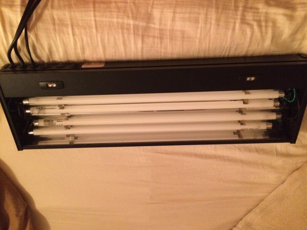 Hello everyone it has been a couple of years since I have been on the forums. My veiled chameleon Dino is still doing great at 2 1/2 years old no problems with him. But I just wanted to tell people about the HO T5 quad fixture from lightyourreptiles. I have been using it for over 2 years and I have to say it's one of the best investments I have made since getting into the chameleon hobby. The bulbs last a full year before they need to be replaced and adding a plant pro bulb makes my ficus tree grow like a weed. Also Todd the owner of lightyourreptiles is very professional and has great prices for everyone. Well I just want to say thank you for taking the time to read this and hope you support Todd because he is the best in my opinion. Here are a couple of pictures of my setup hope you like it.