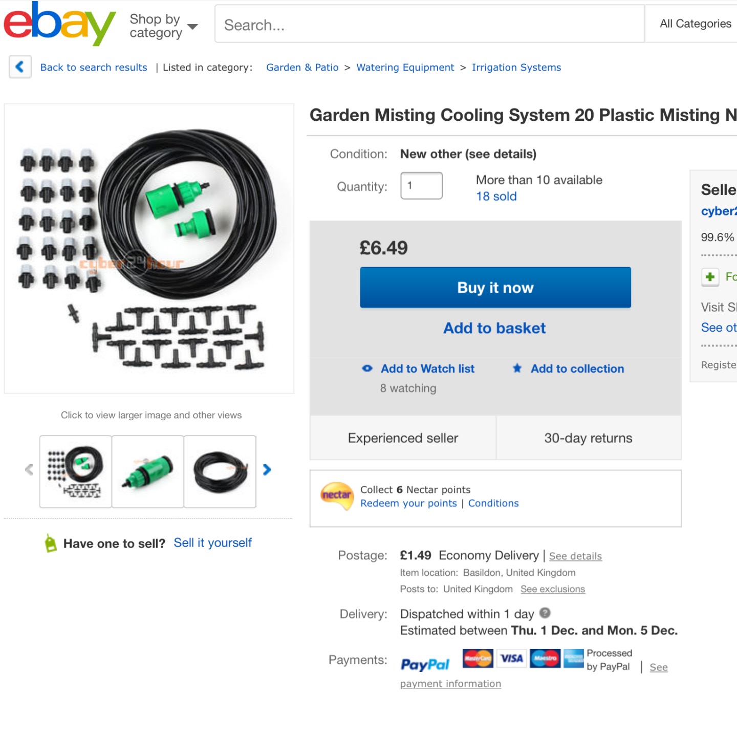 Then I looked into the actual misting system it's self and came across a greenhouse irrigation misting system with piping, 20 nozzles, joiners and a hose pipe adapter and thought "that should do the job" All items so far have cost around £5 to £7.