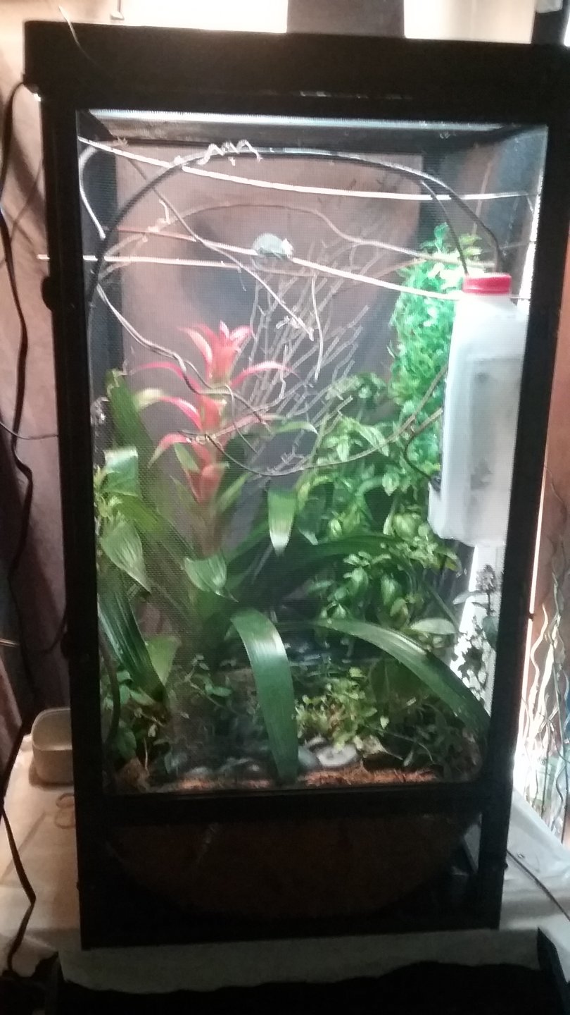 - Cage Type - Describe your cage (Glass, Screen, Combo?) What are the dimensions? All screen cage 16x16x30. I have added current pictures of his cage.