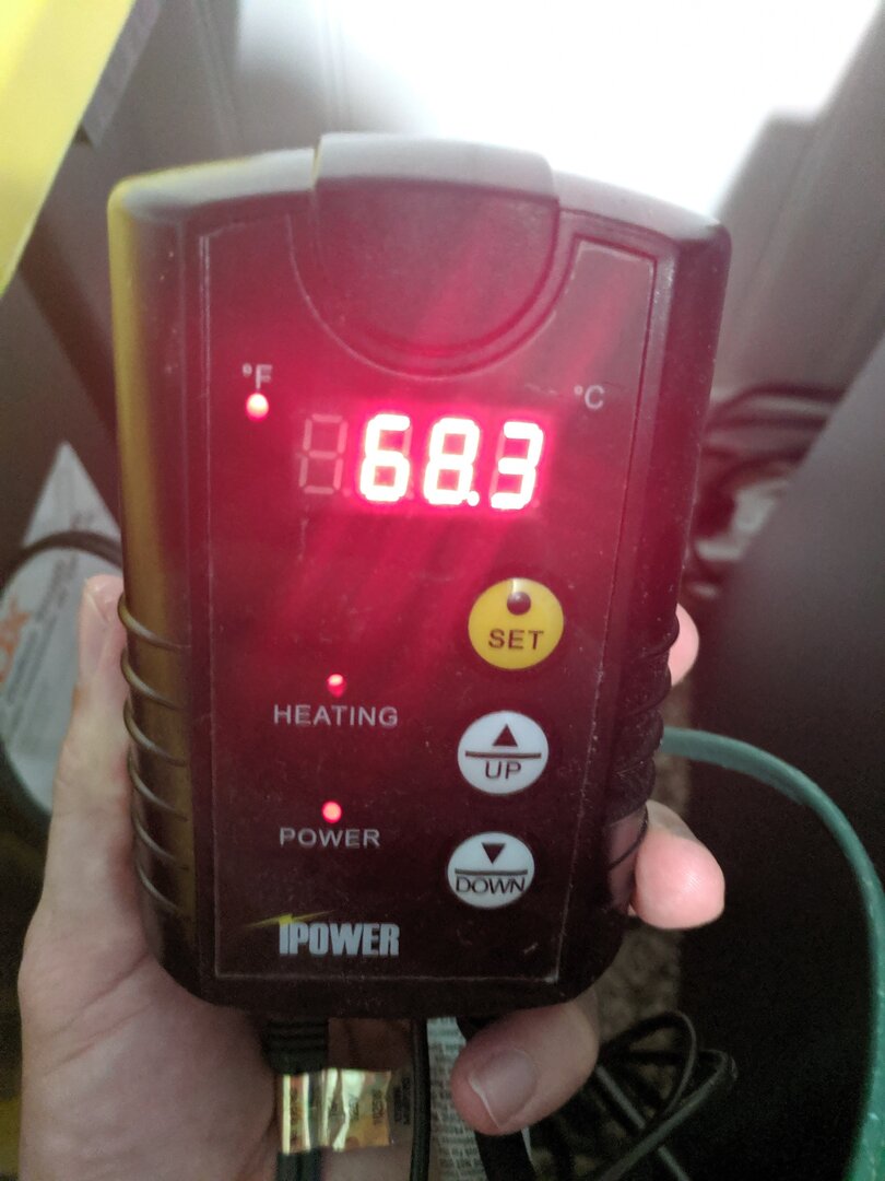 A heat mat with heat controller (set to 85F).