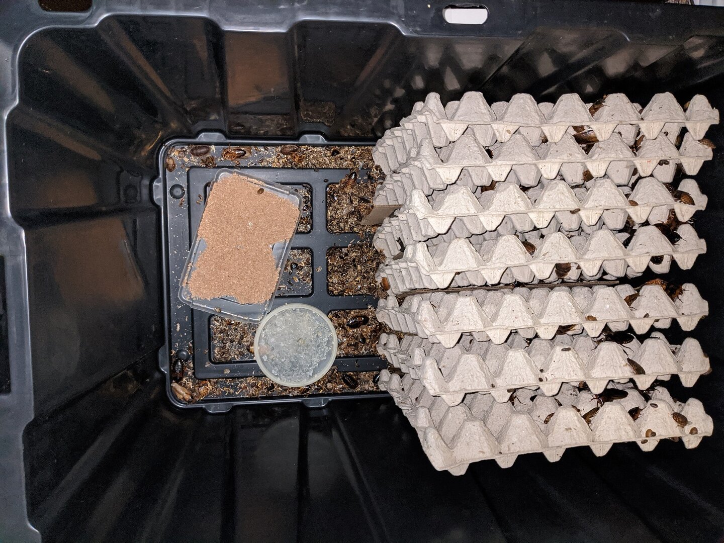 Third, a note on escapes. Drop a few roach traps around your colony in case you have an escapee. Or drop your colony in a larger tub with water for a Medieval moat effect. If any escape, they breed like roaches.