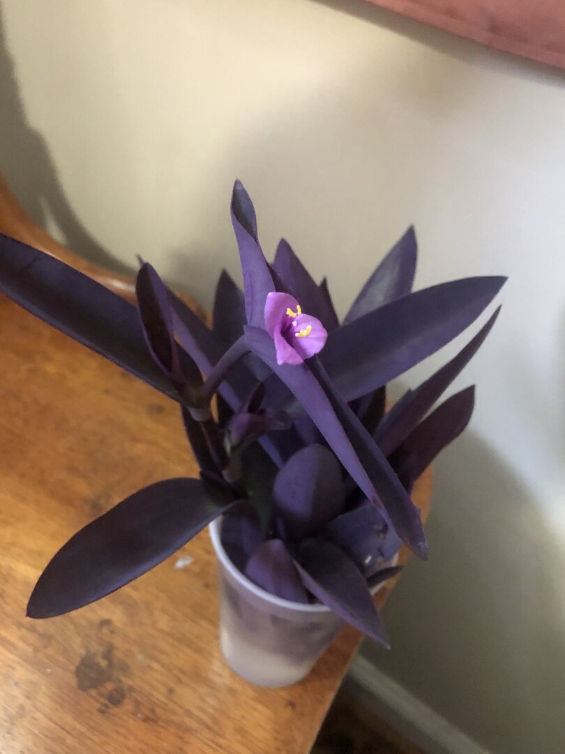 I’m willing to bet money you’ve got a Tradescantia Zebrina I have Tradescantia Pallida the two are both Tradescantia and are both Wandering Jew. They’re actually named Wandering Jew because they can be put virtually anywhere and absolutely thrive. They’re very versatile plants. I’ve found T. Pallida much more adaptive than T. Zebrina though. T. Pallida is actually native to the Gulf Coast of Mexico. I have an odd obsession with the Gulf area and the Caribbean… they used to grow in Florida where I lived. I’m very fond of them.