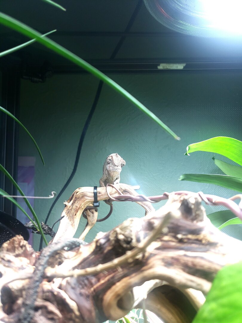 Coza is settling in nicely. Spent the day exploring her enclosure and this morning had a nice silk worm breakfast with a v small hornworm. Crickets will arrive today so tomorrow she can have her hunt!