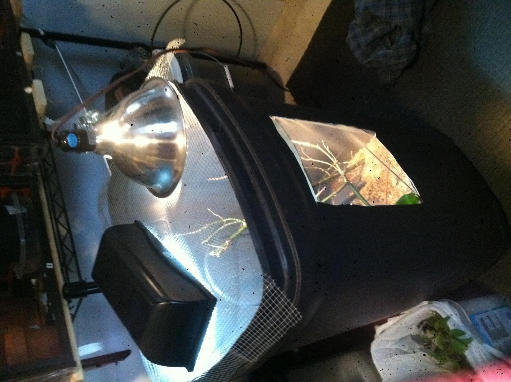 Temperature - cage at bottom ~67 basking ~ 87F. lowest 62f