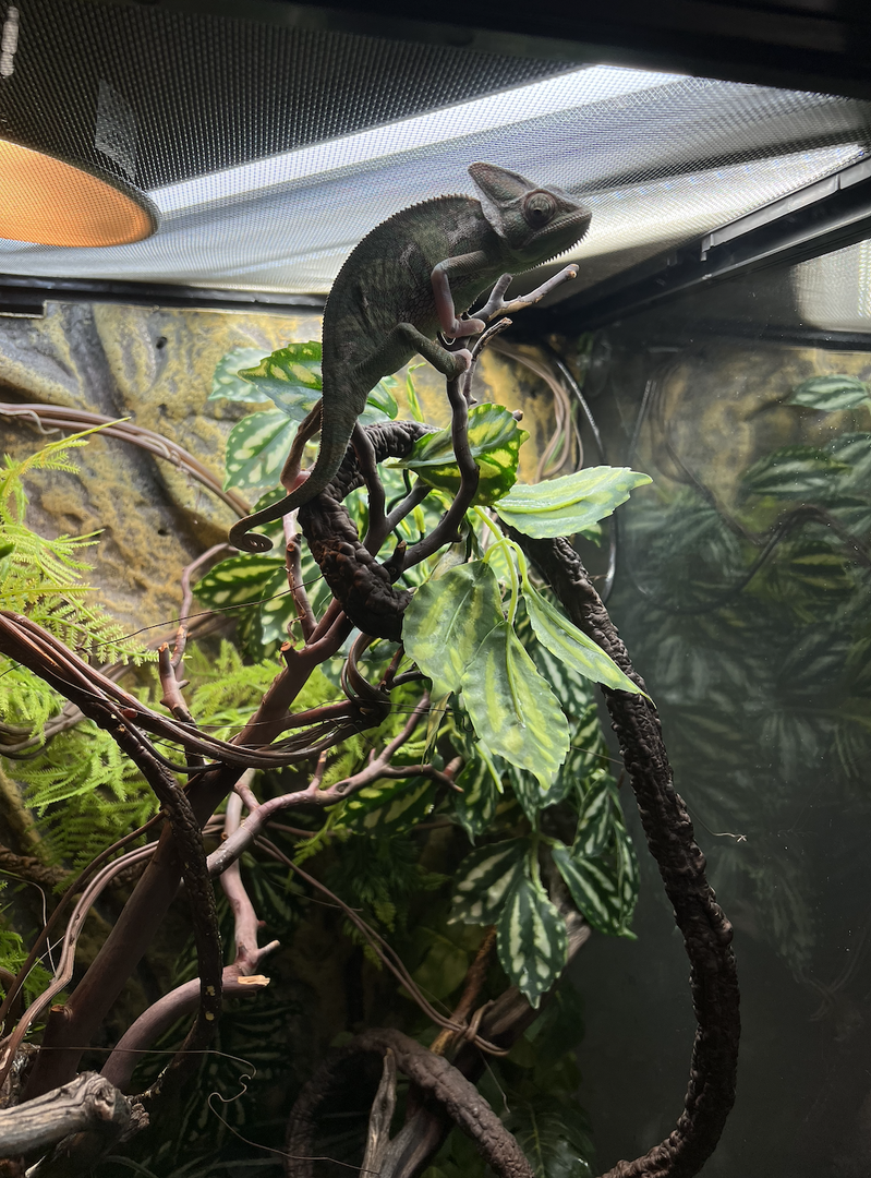 I am mostly interested in finding someone that will take really good care of him. Preferably that has previous chameleon care experience and will provide him a good, healthy life. He is a piebald veiled cham, around 10-12 months old if I had to guess. I bought him about 6 months ago from a local Petco. It was more of a rescue mission at the time as he wasn't getting the best care. I did have to take him to the vet and clear some parasites. He is now healthy and in good shape, according to the vet. I would love to hang onto this guy but my busy travel schedule with work makes it difficult.