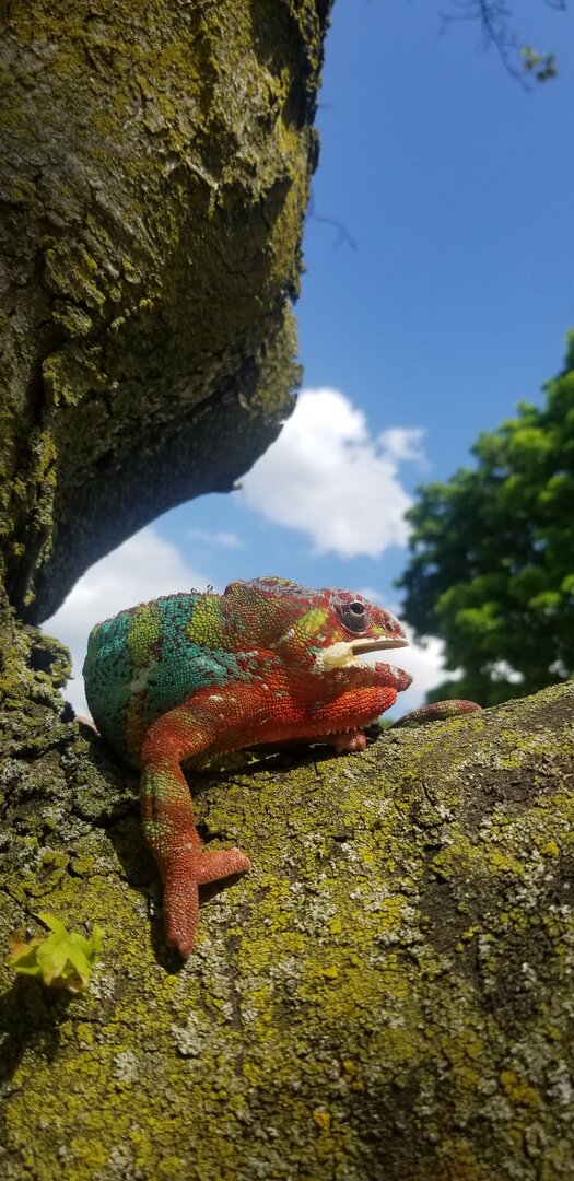 The species, sex, and age of your chameleon. Fucier paradalis Male 2 years 3 months old. How long has it been in your care? I've had him for 2 years