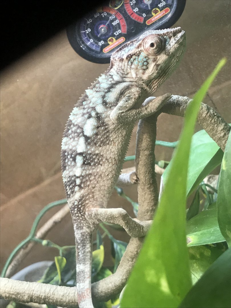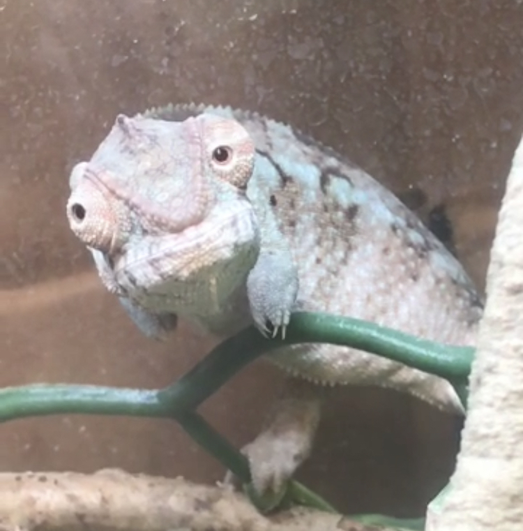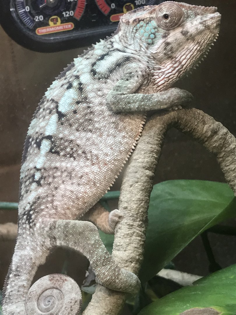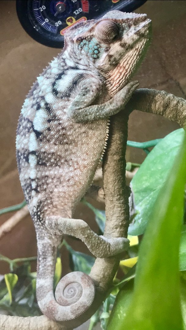 The photos where he is more of a blue color are from about a month ago, the others are today!