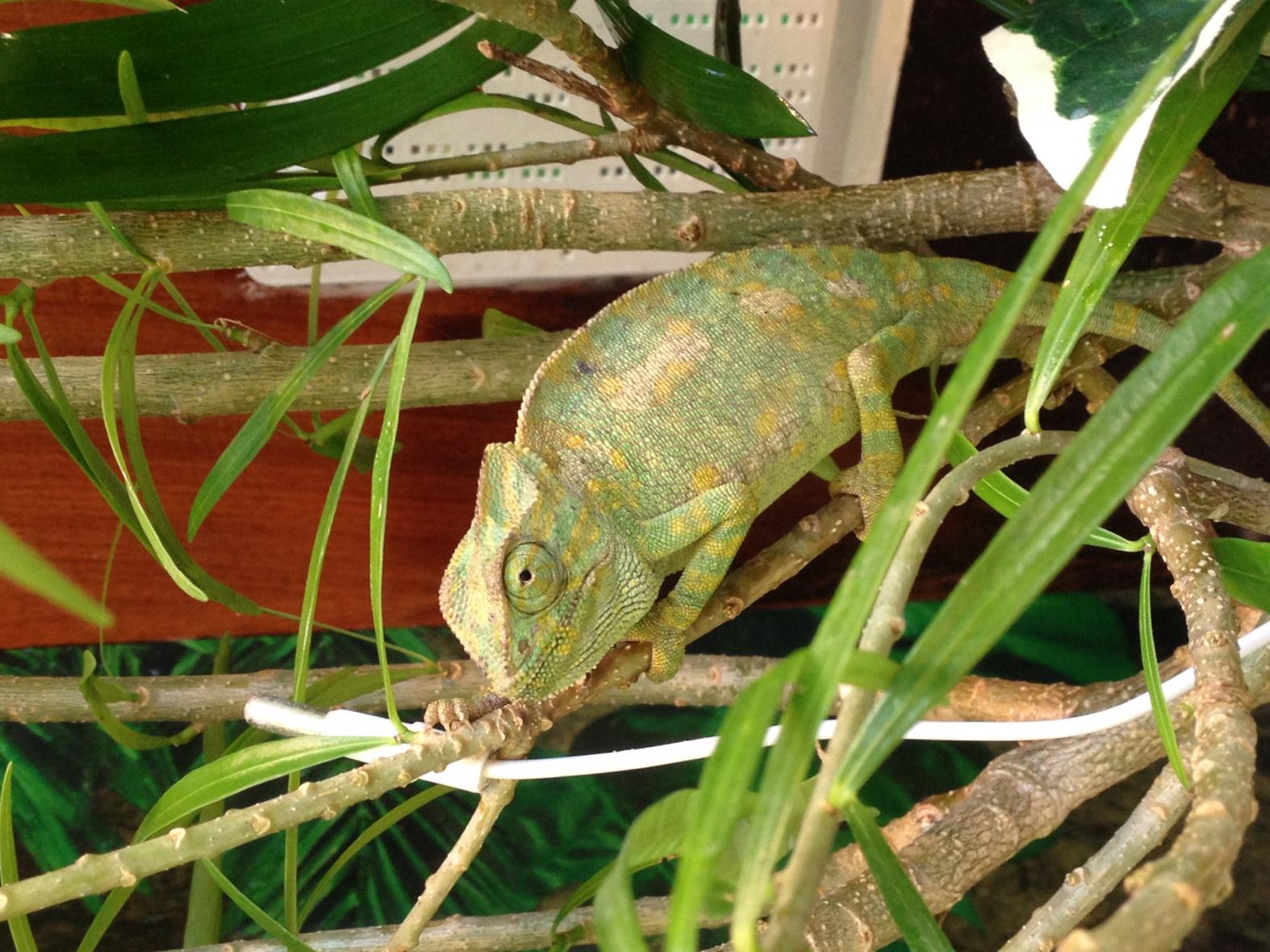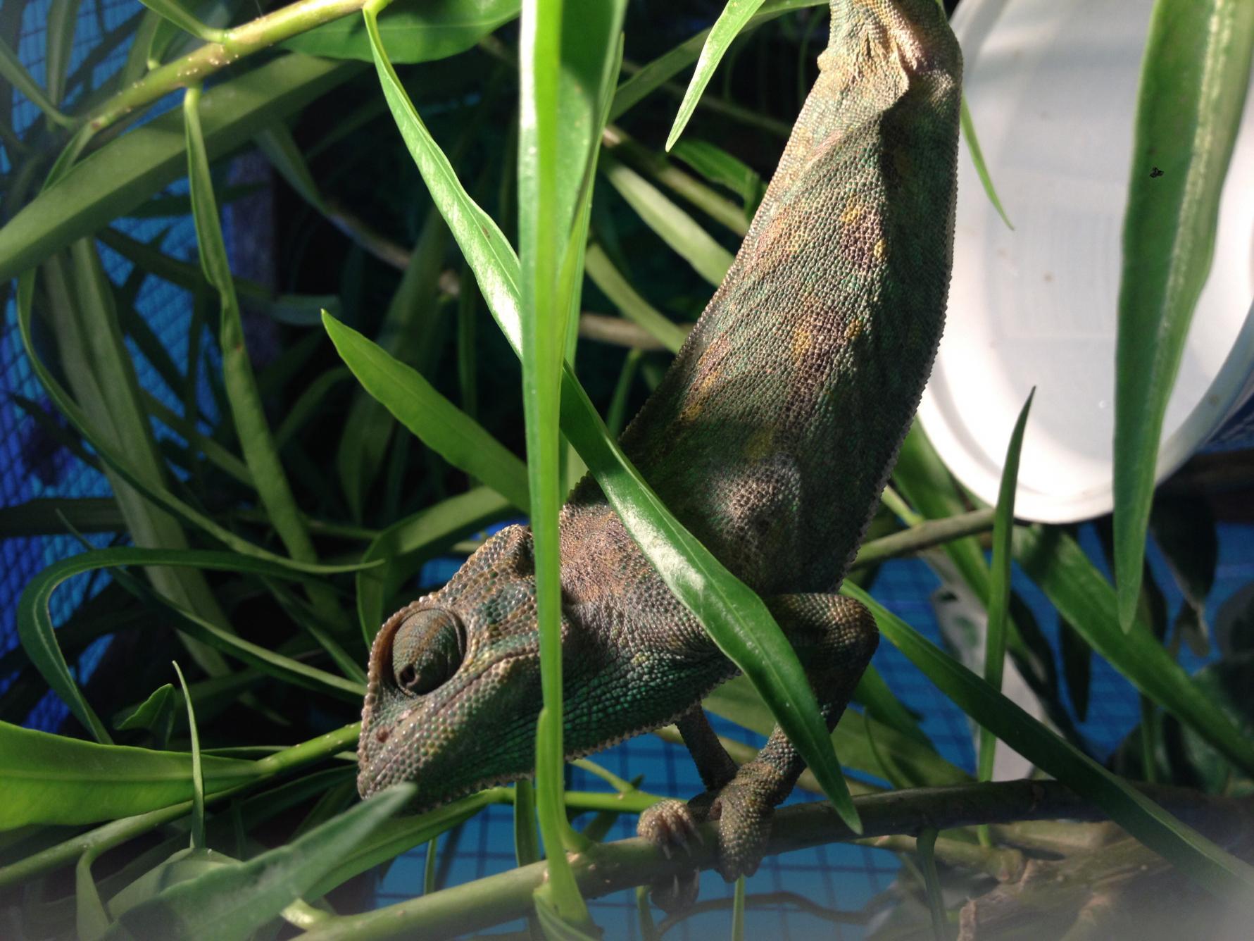 Around a week and a half ago I rescued a female Common Chameleon who was found opposite my daughters school. She was sitting on a tree with very minimal foliage and the tree is located in an empty plot with little or no trees.