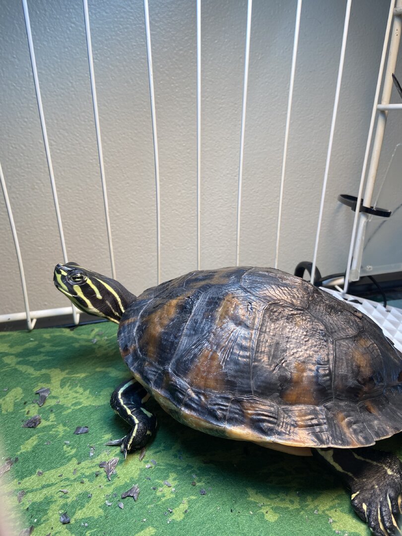 Aww he/ she is adorable and I'm glad you have such a great heart! My husband would hate it but I would have done the same thingIn my travels I happened across a turtle (yellow bellied slider maybe?) in a very sad situation. Poor thing was in about 2” of nasty and foul water - no light, no heat, no filter, no dry area, no nothing - just a 20 gallon tank, the foul water and the turtle…for 2-3 years. I was given this poor little critter and it is just so sad. Poor thing doesn’t even know how to ‘turtle’ anymore. I quickly set up a 55 gallon tank which while ideally needs to be bigger, will do for now. I just need a decent canister filter, which will have to wait a couple of weeks. Anyhow, I put the turtle in his new tank this morning and he has forgotten how to dive and swim. He’s just paddling around at the top. Thankfully he has enough strength and know how to climb to the basking area and has been basking all day. Not sure if it’s just being able to dry out, the heat or the uvb, but he’s obviously enjoying it. Has been shedding scutes like crazy and I’m wondering how many layers of shed scutes have built up. I’m surprised it doesn’t have shell rot, infected eyes and is even just still alive. I do see some missing claws and possible scars. I think it was another case of being found in the wild and taken as ahostagepet. It has no idea what real food is other than pellets which are even too big for it to eat. Hopefully with time, it’ll remember how to ‘turtle’ and recover. A turtle is the very last thing I want, but my stupid soft heart over-ruled the brain.