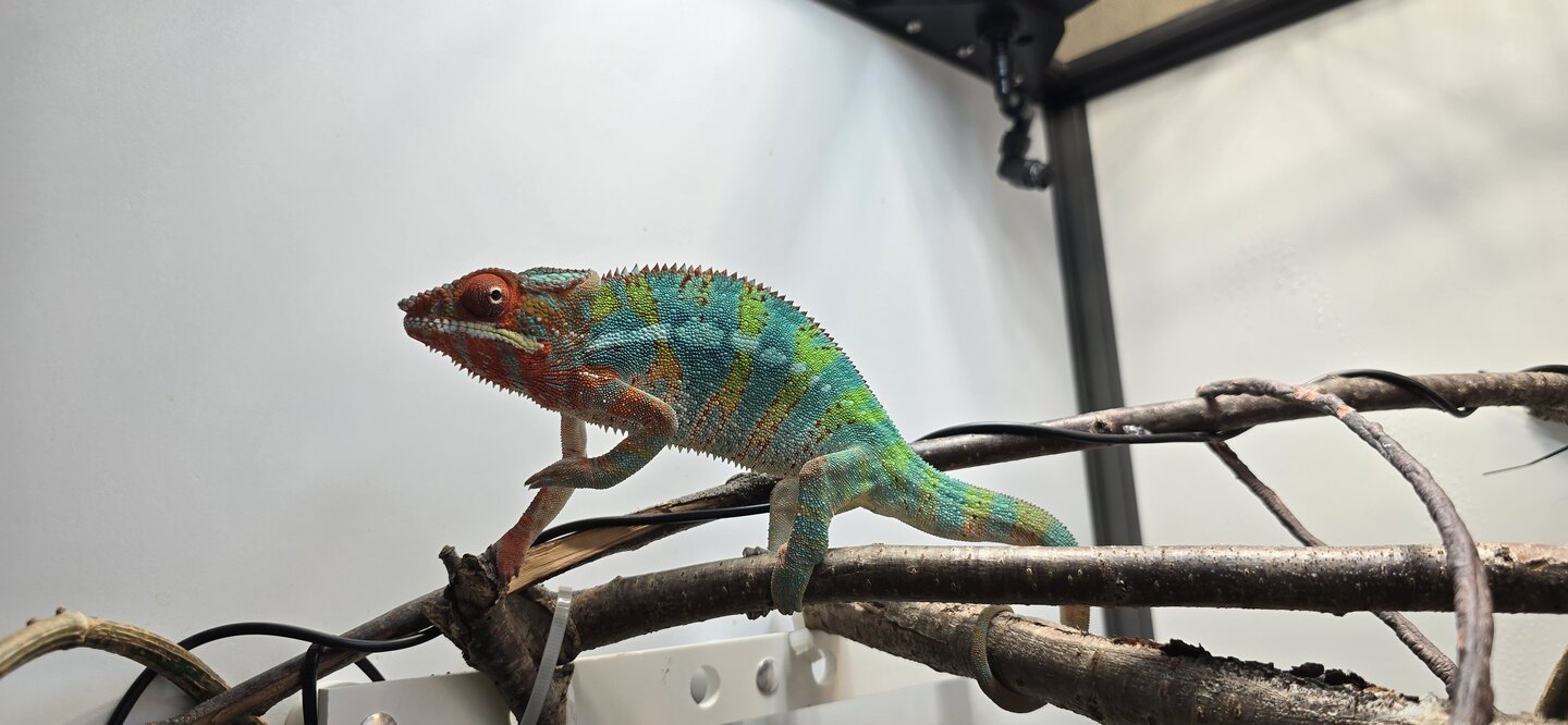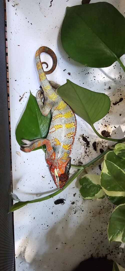 I don't know what happened. I religiously follow the husbandry from here/chameleon academy. I feed BSFL and Dubia, gutloaded with collard greens, mustard greens, carrots, a bit of fruit once in a while, dusted with calcium without D3, except for 2x a month with reoashy plus Lod. I have an Arcadia 6% uvb light, basking temps no higher than 82, ambient in the low 70s, into the 60s at night. I mist with a mist king and keep humidity between 40-50 in the day and try to get it high at night. Dragon strand 24x24x48 hybrid enclosure with all live plants (pothos and a money tree). I live in New Mexico so I need the hybrid to even keep those humidity percentages.