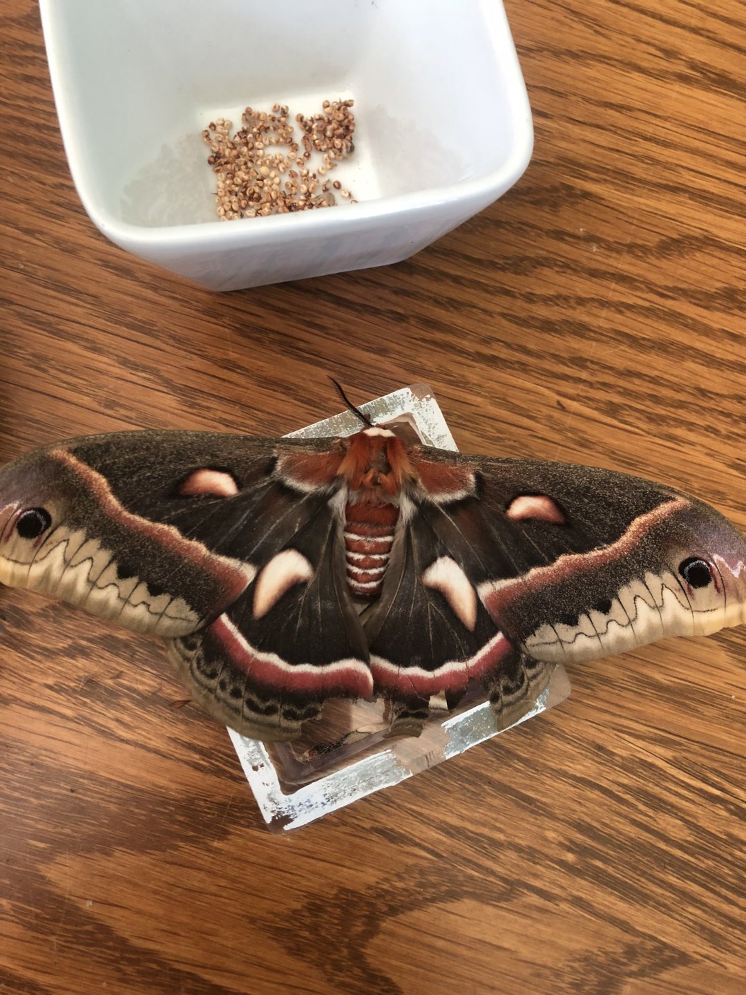 I’ve recently started breeding my own silkworms to feed my chameleon so I’ve been learning a few things. I knew she wouldn’t live long after she finished laying so we just left her in the box until we knew she was done. She was too injured to fly but her wings weren’t too damaged so we kept her to put in one of those shadow boxes to put up on the wall. Morbid, maybe but she’s very pretty and I’m into weird stuff.