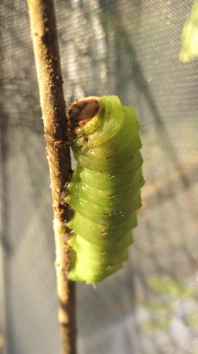 This catapiller was a prize find from mother nature it was gifited to my by the pine tree i had removed due to danger of house damage ; he fell right where we had just brought down these 2 tall pines, UNHARMED; i tell u it was a miracle and i fell in luv with it, now, he iis in a corner in my study already spun a lite coccoon but still has an pin hole he can see ougt of an d is on his bach coocoon glued to the floor and wall corner; I named him SID after Sid Vicious cause he survived all that around him and made his nest to become a massive moth, he is so beauitful and its such a joy to see and learn from, i felt very fortunate