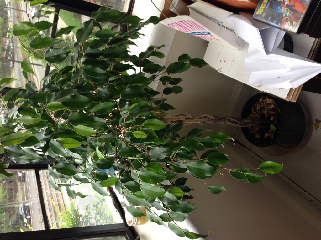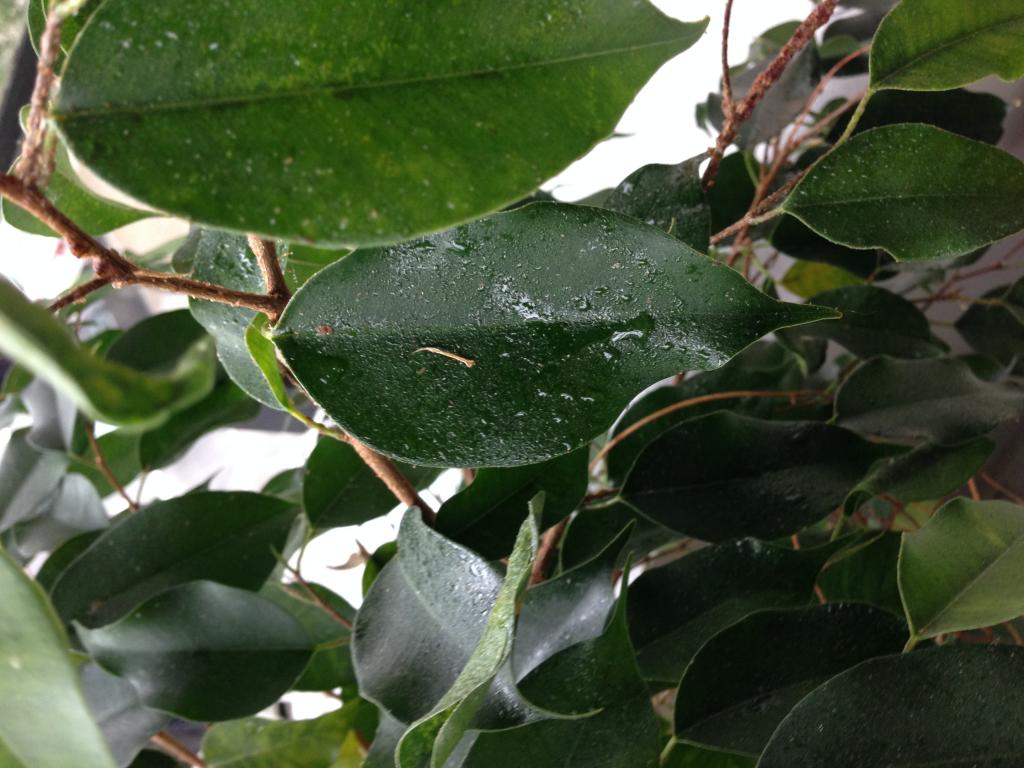 I'm hoping to let the little dude out and have him get some natural UV through the window screen and chill on the ficus. I gave my ficus a heavy shower during the winter because there were these little black bugs inside the new leaves. After the shower and some heavy trimming, the problem seems to be gone. The only thing that I'm curious about is that the leaves get a bit of sap that seems to be sweating out of them, and dripping to the floor (had to lay down some paper towels for this). Is that normal or is it a sign that I'm doing something wrong with it? I water it once a day till all the soil is damp.