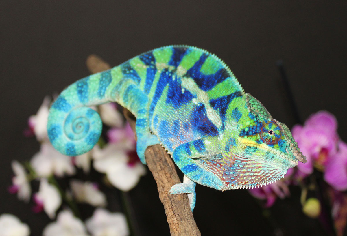 This extraordinary young male is only available due to space constraints. We are keeping his brother, and because of that have decided to place him up for sale. He is an amazingly colorful male from our first Captain Spaulding x Andromeda clutch. He would make a gorgeous pet or a great addition to an Ambanja breeding project. He is just a little over 8 months old.