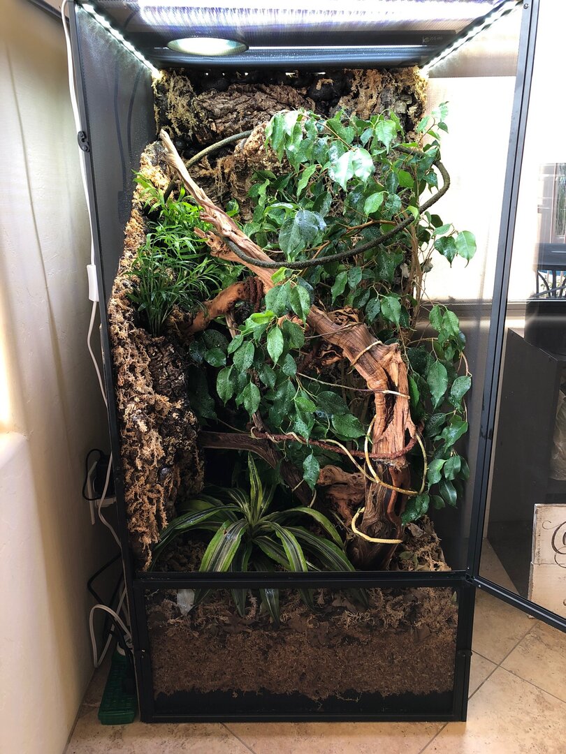 TL;DR: (full story below) I am selling my 2x2x4ft bioactive terrarium for an arboreal reptile. I had built it for a rescue veiled chameleon late last year, who was unfortunately too far gone by the time he came into our care. Full specs and what's included all listed below. Currently located in Southern Arizona (Tucson) - cannot be shipped.