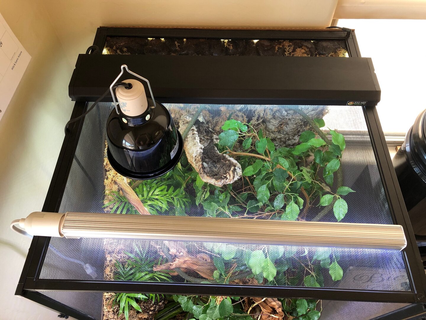 In Oct 2019, after some relatives in Southern California reported finding a veiled chameleon in their apartment's courtyard (and receiving no responses from a "found cham" campaign), we found ourselves setting out to build a perfect home for our new rescue friend.