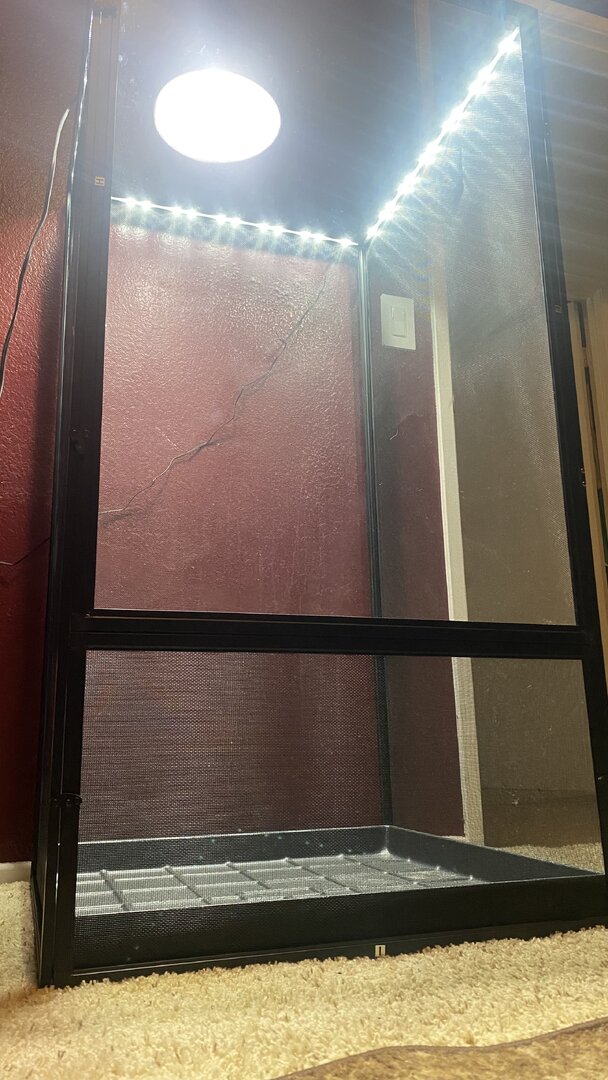 Wow!! Good job on the big enclosure!! Having the removable substrate tray does help a lot!! You have to add a lot more plants, vines, and maybe one or two big branches in there!! If you want, also add your preferred log or dome feeder!! Your chameleon is going to love that! 🦎