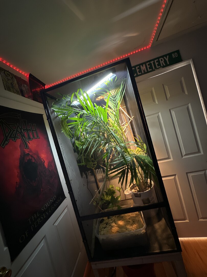 Just got my chameleon in its new enclosure and the first thing she does is climb to the very top of the plant lmao I’m wondering if I should cut the top off to avoid burns.