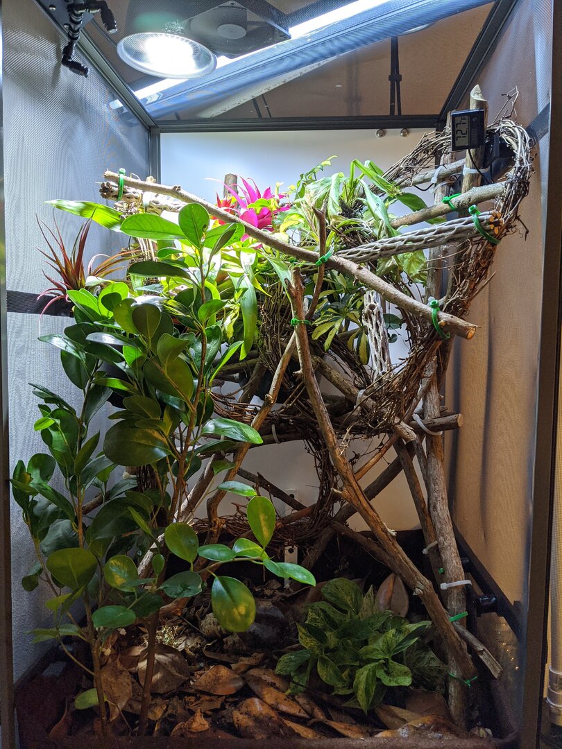 Thank you ? I’m really happy with how the plants have grown in over the year. The monstera is definitely an amazing plant for there enclosures. I would like to add one to imeldas cage in hole she won’t murder it with her plant nibbling.I’ve been thinking about how I want to set up my new guy’s enclosure and now I know.![]()