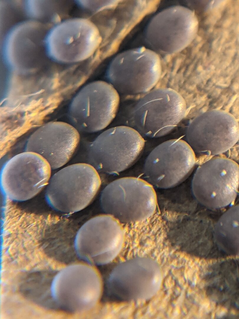 1. first batch of eggs and I removed a small amount leaving on the cardboard and also removed a few and sprinkled on the food.